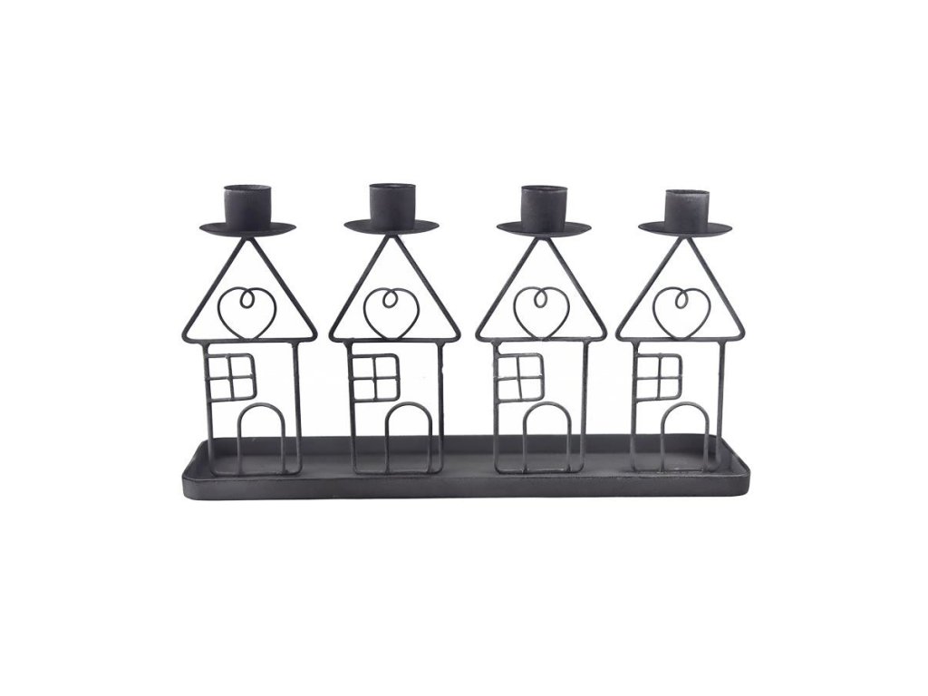 Dekorační adventní svícen. Rozměry: 30 x 8,5 x 17 cm. Materiál: kov. Barva: šedá. Upozornění: Nenechávejte zapálené svíčky bez dozoru. Dekorace je určena do interiéru. .Doplňkové parametry