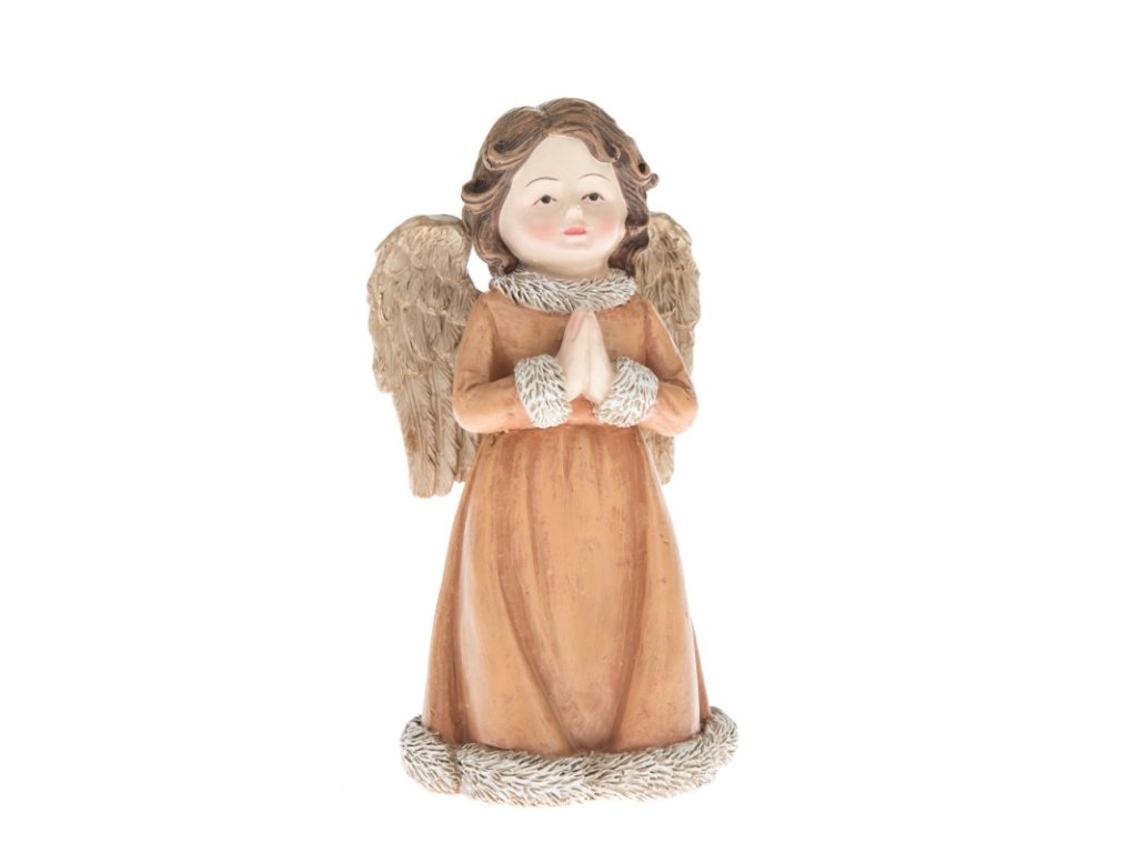 Andílek pro štěstí je ručně malovaná soška holčičky s vlnitými vlásky, oděná v jantarových šatičkách, lemovaných krémovou kožešinou. Andílek má sepnuté ručičky a modlí se za všechny, kteří potřebují lásku a ochranu.