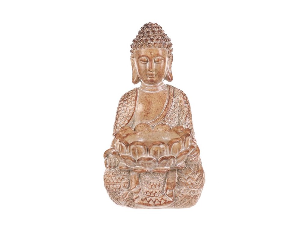 Buddha - polyresin, místo na čajovou/LED svíčku, sv. hnědý
