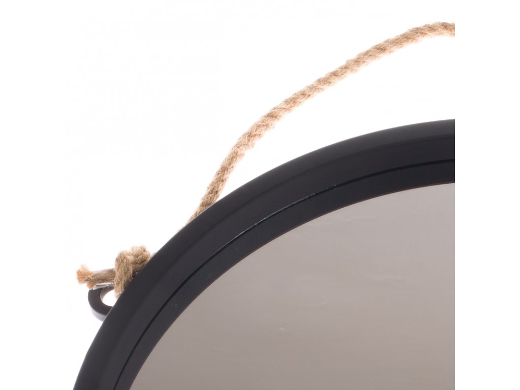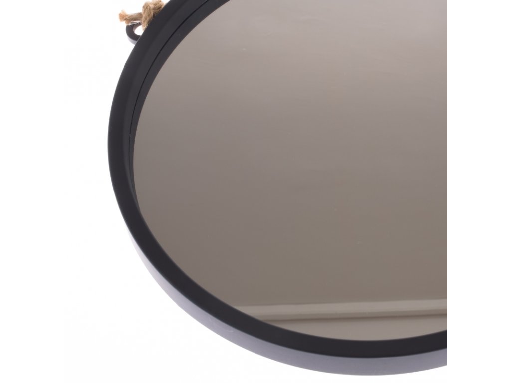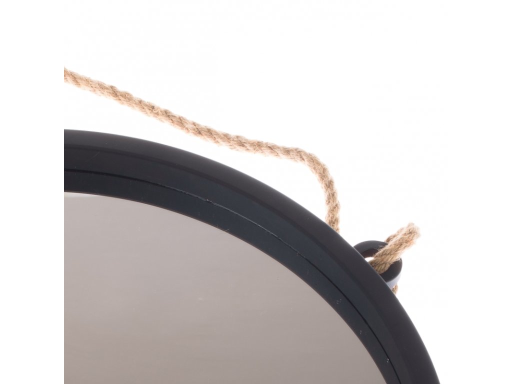 Černé zrcadlo s plastovým černým rámem s lodním lanem pro zavěšení.
