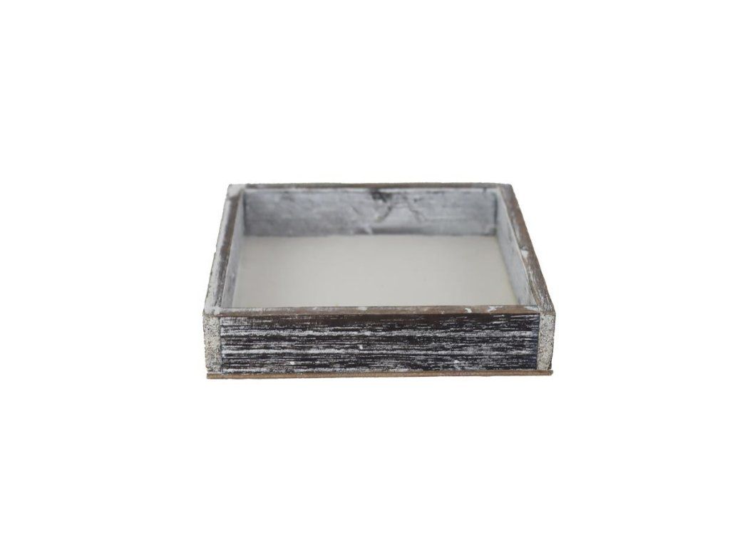Dřevěný dekorační podnos. Rozměry: 15 x 15 x 3 cm. Materiál: dřevo. Barva: hnědá, bílá. Není hračka. Určeno do vnitřních prostor.Doplňkové parametry
