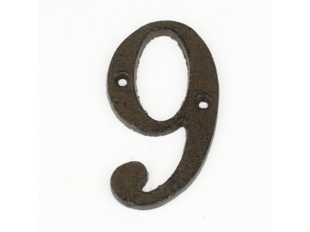 Domovní čísla 9 litina 10,5cm k označení domu, dveří nebo branky.