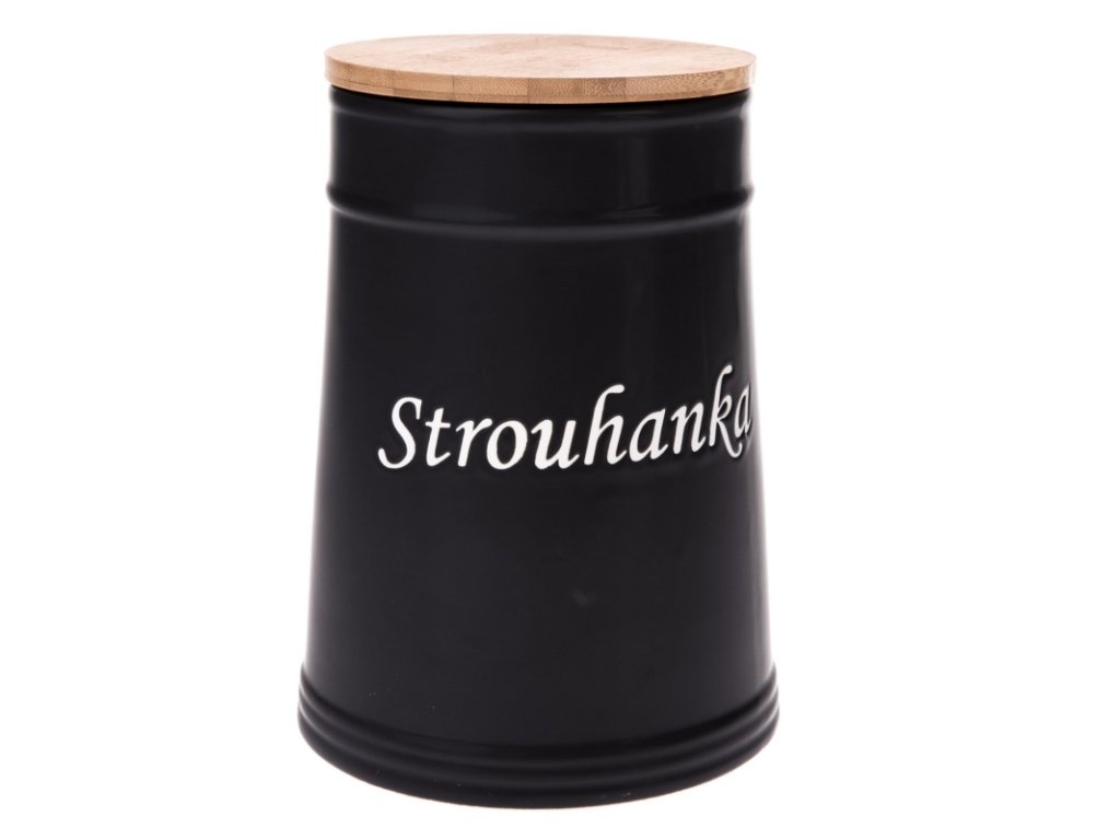 Dóza na potraviny z černé keramiky s bílým nápisem Strouhanka bude ozdobou vaší kuchyně. Je opatřena bambusovým víkem, takže její obsah bude chráněn před prachem, vlhkem a škůdci.