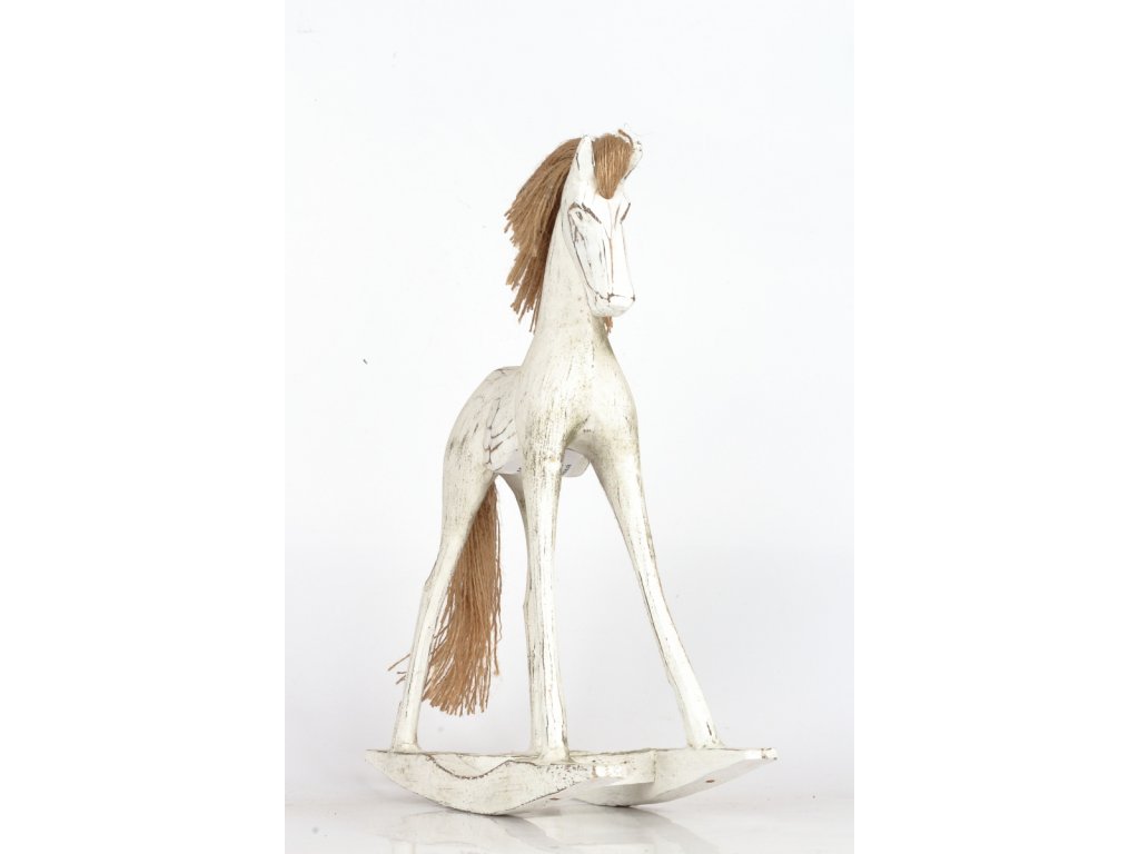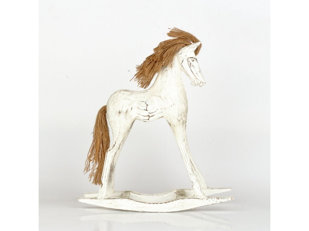 Dřevěný bílý houpací kůň 28cm hýří hravostí a elegancí.
