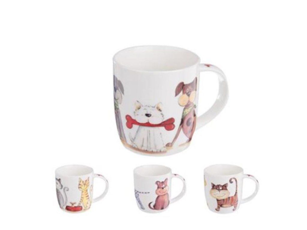Sada 4 hrníčků. Každý hrníček je s jiným obrázkem, viz.foto. Objem hrnečku 0,4 l. Rozměry: 8,5 x 8,5 x 9 cm. Materiál: porcelán. Barva: bílá. Výrobce: VELKOOBCHOD ORION, spol. s r.o. Nedošín 132, 570 01 Litomyšl zasilka@orion.lit.cz .Doplňkové parametry