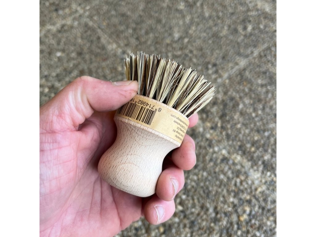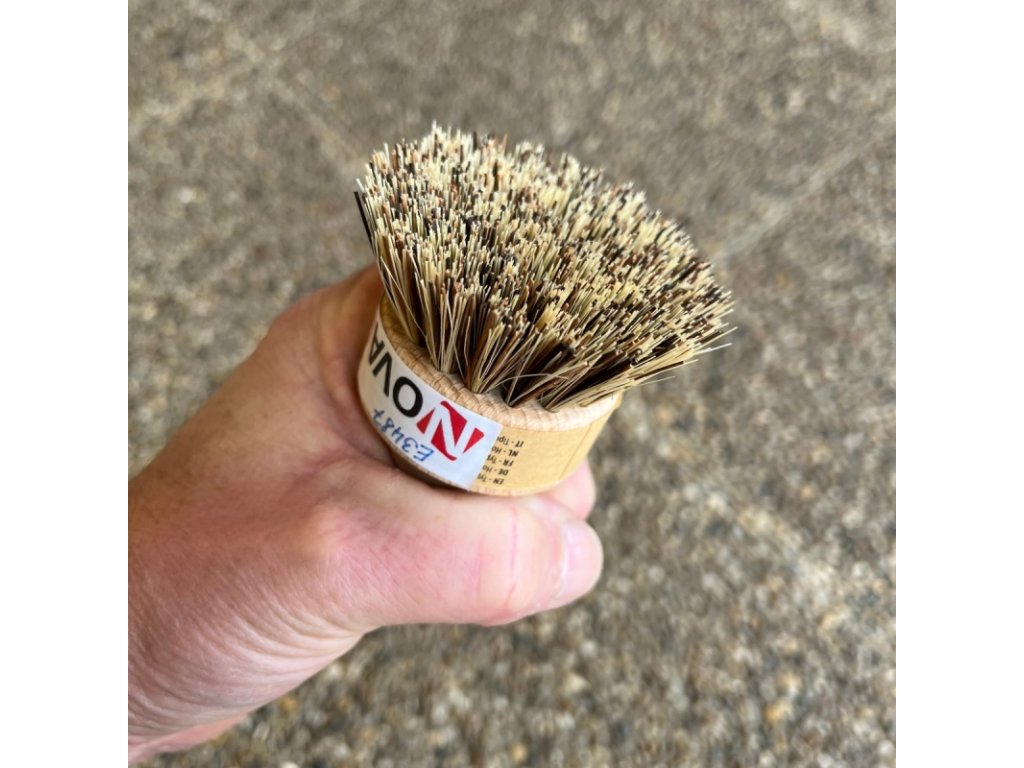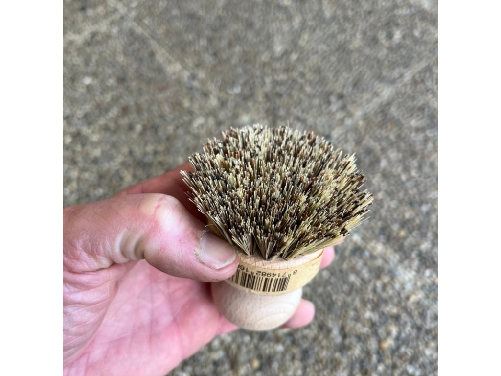 Hrubé kokosové vlákno vsazené v bukové rukojeti vysoiustružené pro pevné a bezpečné uchopení do ruky, je ideální právě pro čistění tohoto povrchu.