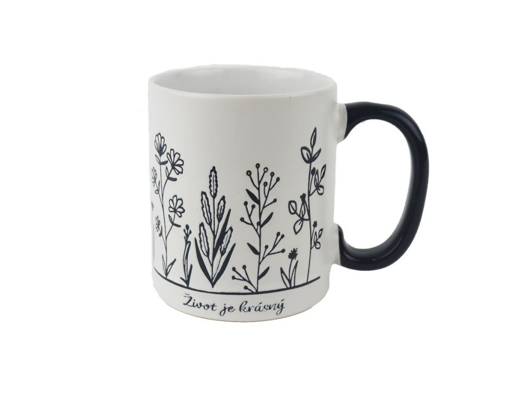 Keramický hrnek. Hrnek má objem 350 ml. Rozměry: 8 x 12 x 10 cm. Materiál: keramika. Barva: bílá, černá. Výrobek splňuje požadavky pro styk s potravinami. .Doplňkové parametry