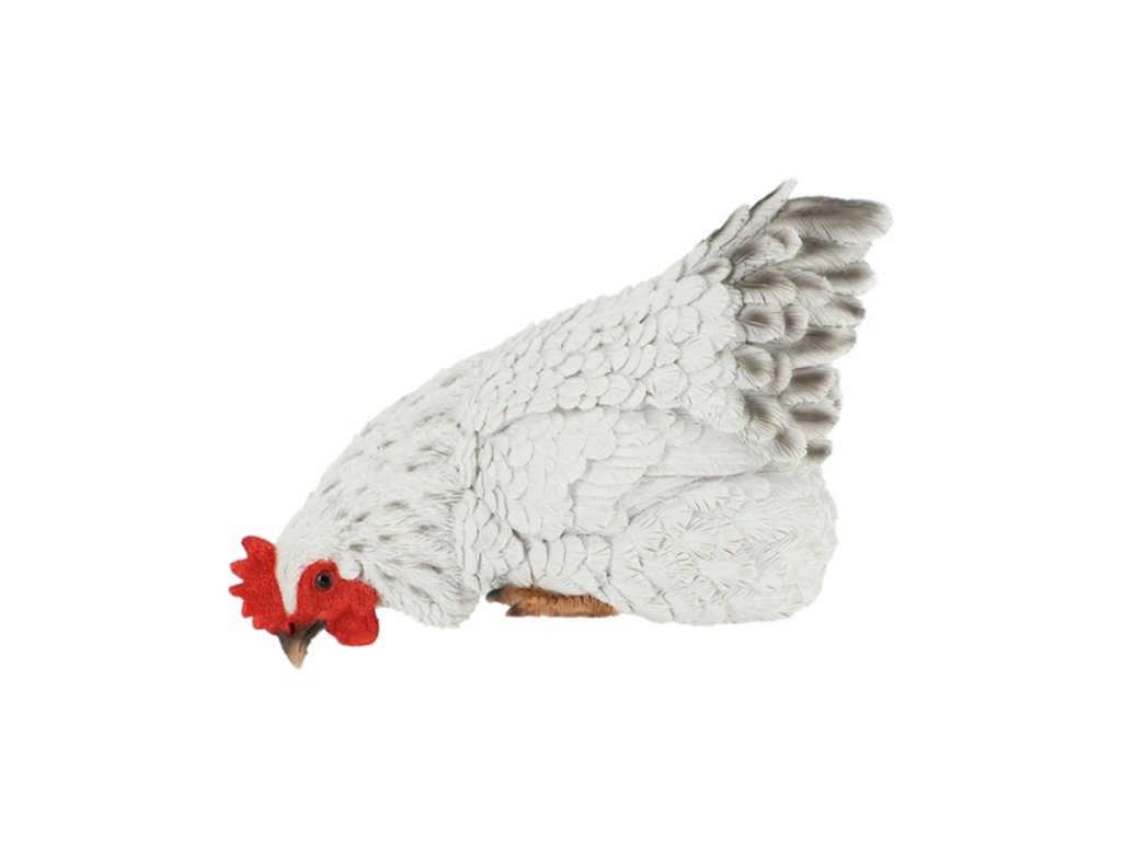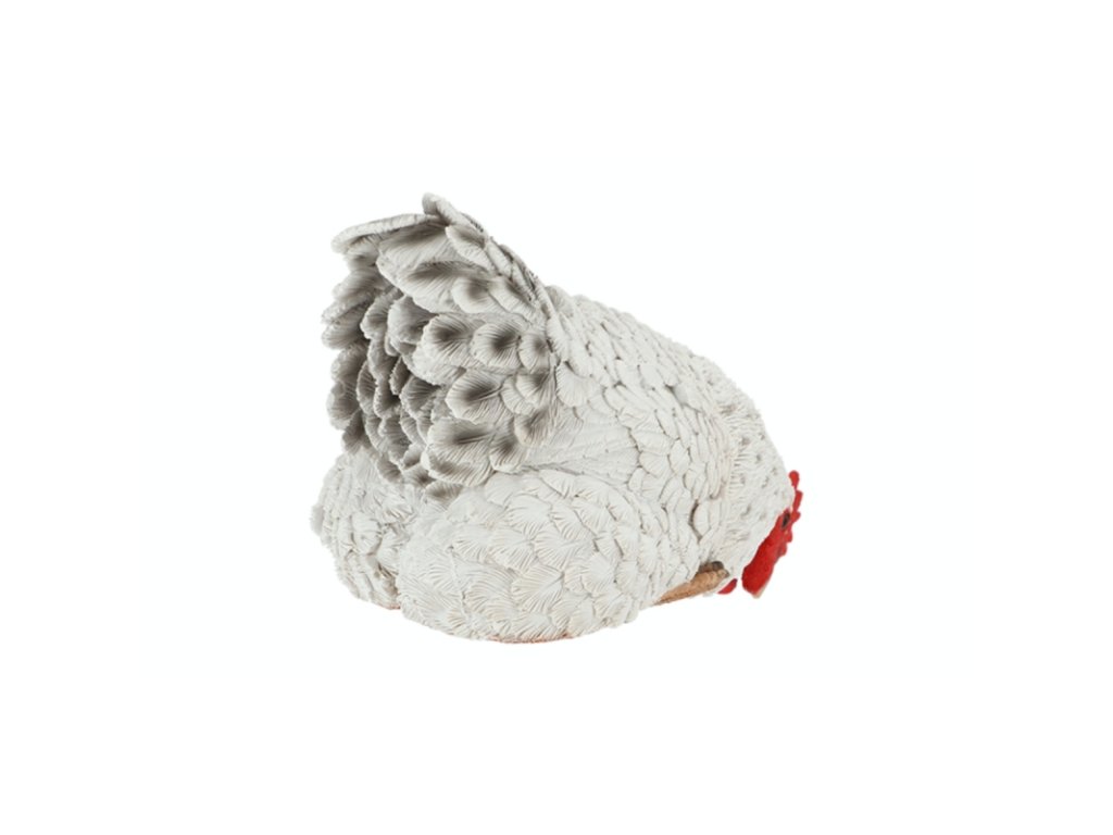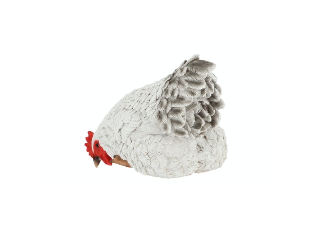Keramika do zahrady vyrobená z pryskyřice je mrazuvzdorná a použité pocrchové barvy odolávají UV záření. Slepice tak neztratí na slunci svůj odstín.