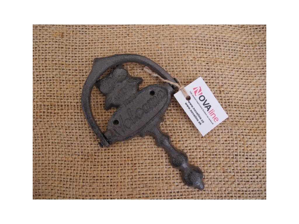Klepadlo na dveře snadno připevníte díky dvěma otvorům na šroubky v rozích. Je vyrobeno z litiny, odolného a krásného materiálu.