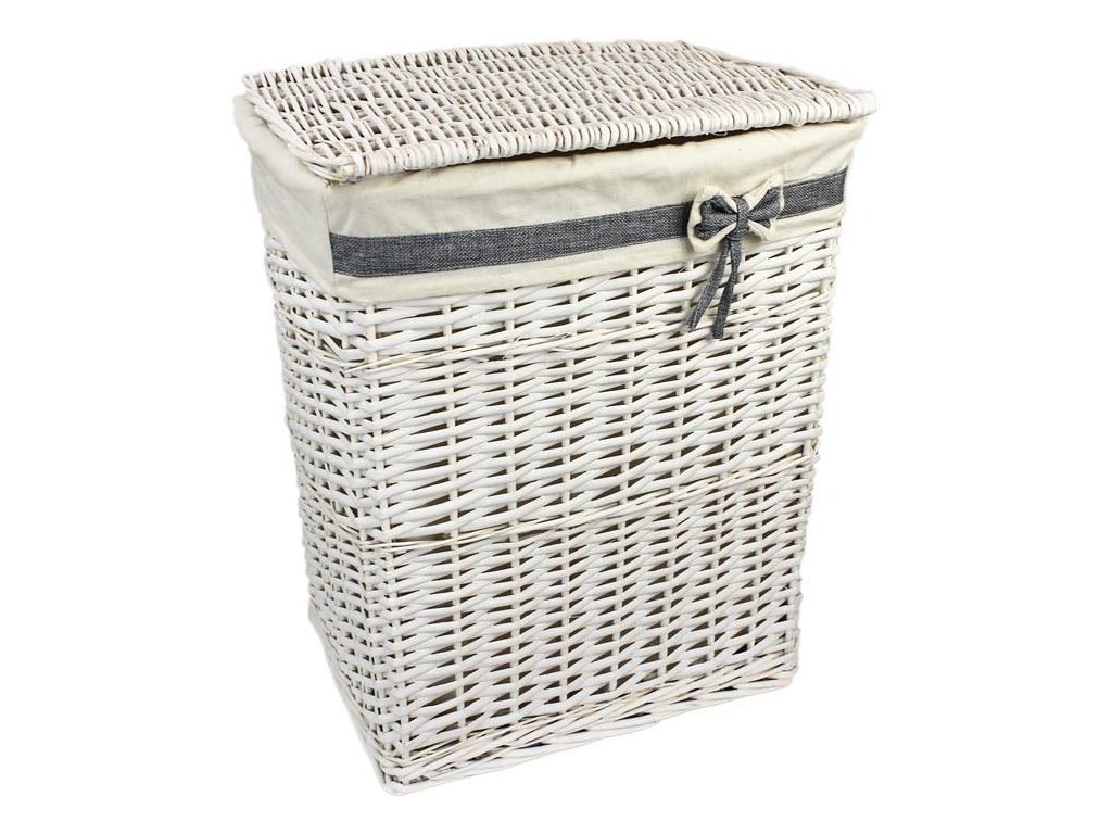 Velice pěkný koš na prádlo moderního designu. Rozměry: 45 x 35 x 57 cm. Materiál: proutí, textil. Barva: bílá. Údržba: Vysát a otřít hadříkem. Ruční výroba: rozměr se může lišit o 10 %.Doplňkové parametry