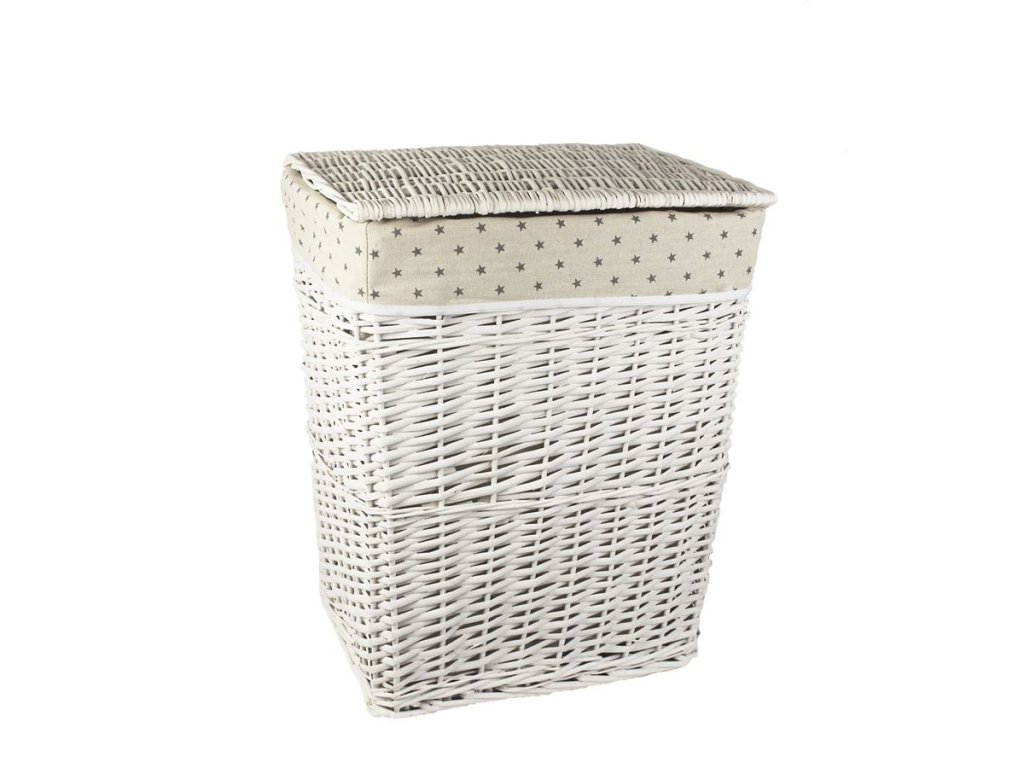 Velice pěkný koš na prádlo moderního designu. Rozměry: 46 x 35 x 57 cm. Materiál: proutí, textil. Barva: bílá. Údržba: Vysát a otřít hadříkem. Ruční výroba: rozměr se může lišit o 10 %.Doplňkové parametry
