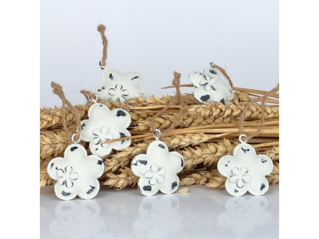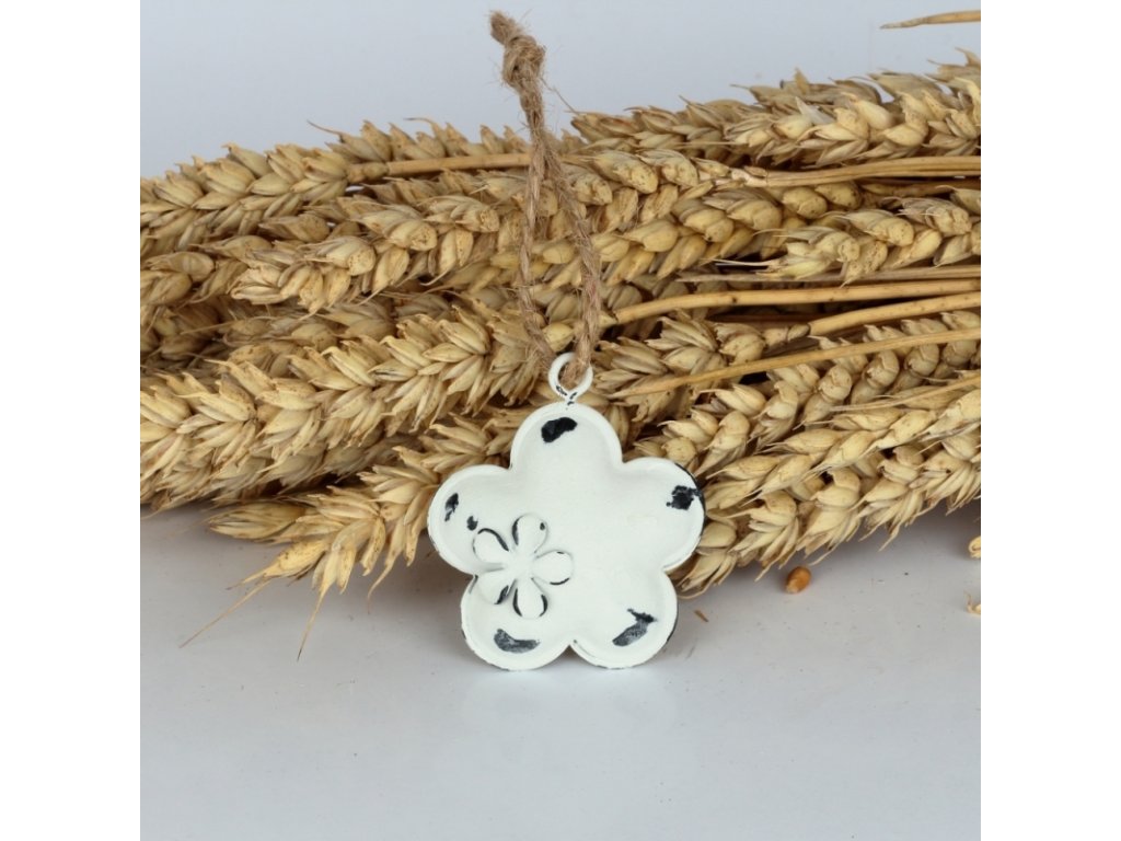 Kovová závěsná dekorace květina 4,5×4,5×1,3cm na větvičky ve váze nebo jako doplněk sezónního aranžmá.