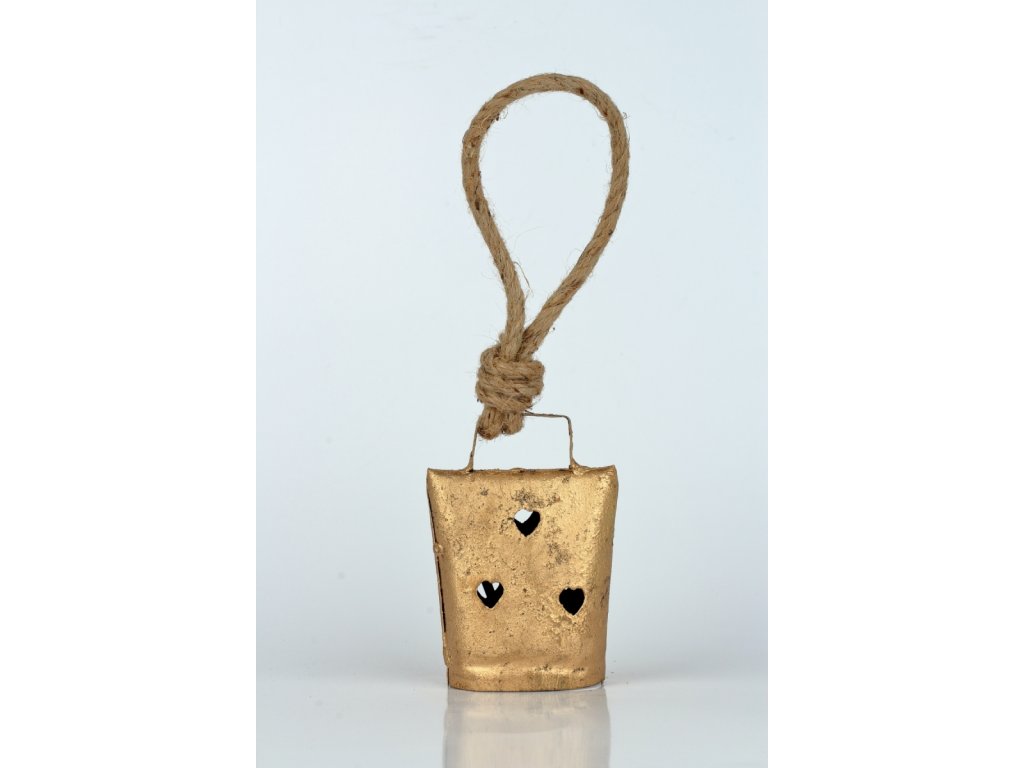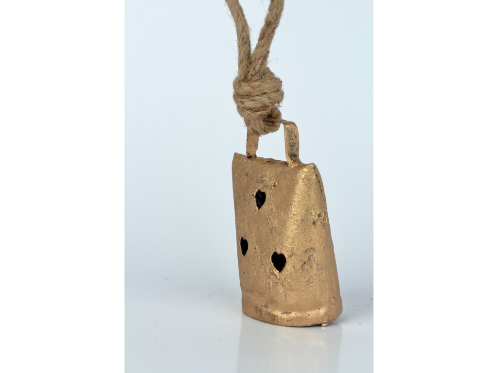 Kravský zvon s děrovanými srdíčky ve zlaté barvě