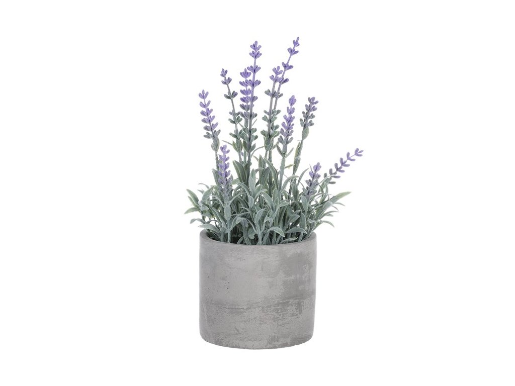 Květiny mají pozitivní dopad na lidskou mysl a emocionální stav. Dokážou zlepšovat náladu, snižovat míru stresu a přinášet radost. I umělé květiny, pokud jsou precizně vyrobeny s důrazem na detaily, mohou vyvolat podobný účinek, a navíc zcela bez starostí. Umělá levandule v šedém betonovém obalu bude pro vás skvělou volbou. Pečlivé provedení detailů s přirozenýmii barvami v kombinaci s krásným obalem bude tvořit nádhernou trvalou dekoraci. Květina vypadá velmi realisticky a vynikne na okenním parapetu, stole nebo jakémkoli jiném viditelném místě.Doplňkové parametry
