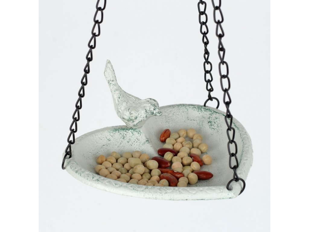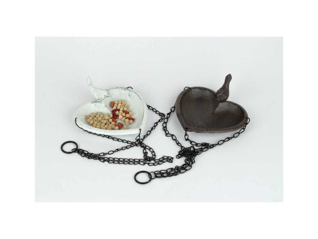 Litinové pítko pro ptáčky si zamilujete na první pohled. Díky motivu srdce s ptáčkem se stane krásnou romantickou dekorací na zahradě, kterou lze díky závěsu snadno pověsit kamkoliv budete chtít.