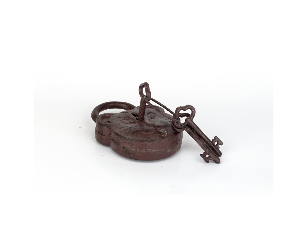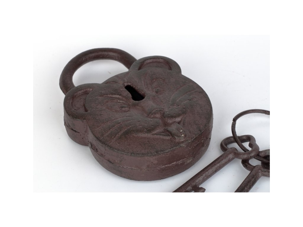 Litinová zámek s motivem myšky, v hnědé litinové barvě.