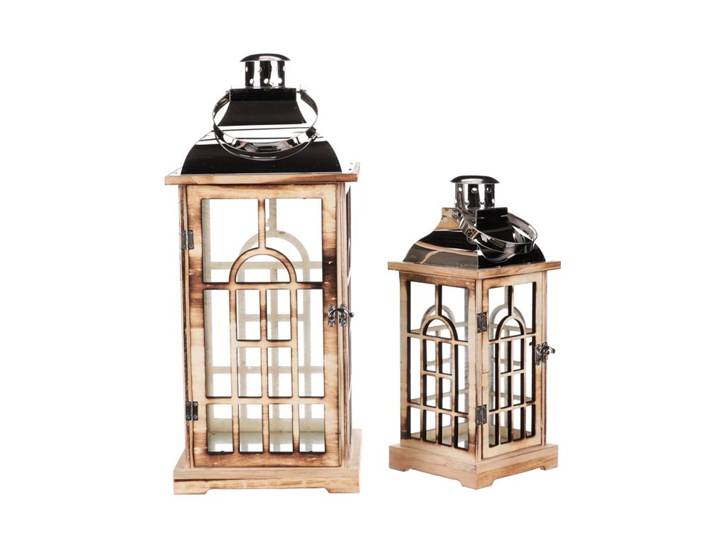 Lucerna dřevěná - kovová stříbrná stříška, cena za sadu 2 ks