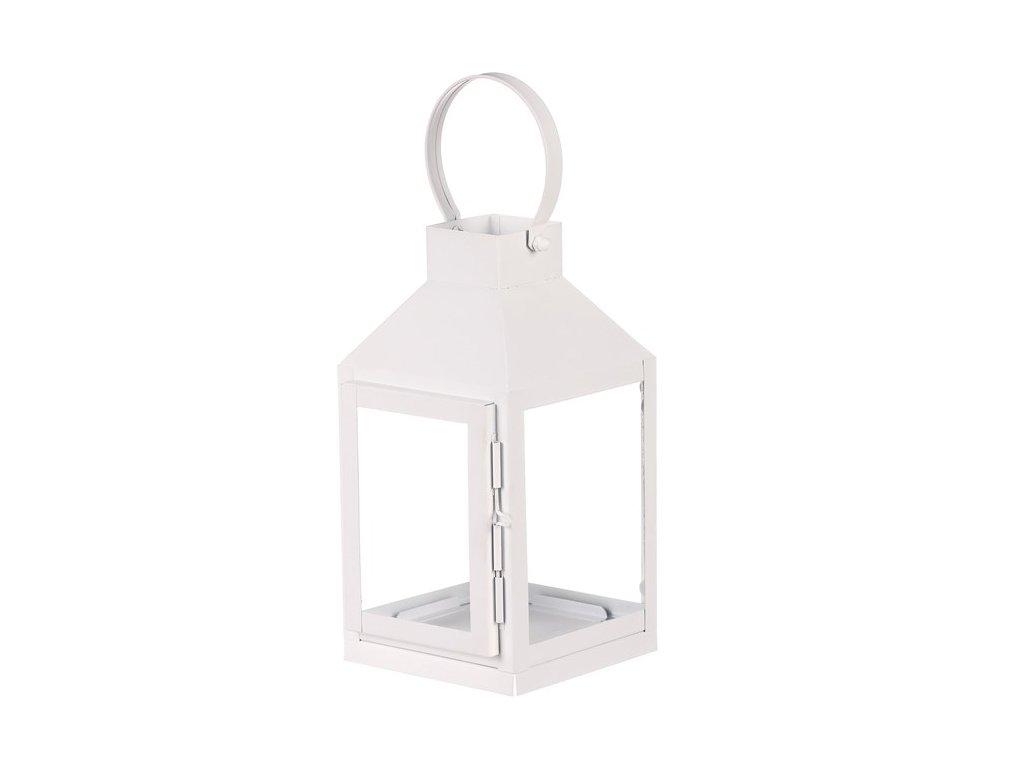 Malá čtyřboká lucerna s bílými kovovými rámy, bude skvělým ozdobným, ale především světelným prvkem vašeho prostoru. Lze ji postavit na stůl, okenní parapet, případně jiné vyvýšené místo. Díky kovovému oku v horní části, nad stříškou, ji lze i pověsit a získat tím nádherný zdroj přirozeného světla z vložené svíčky. Všechny 4 boky jsou vyplněné čirým sklem, skrze které budou neodolatelně pronikat paprsky světla všemi směry.Doplňkové parametry