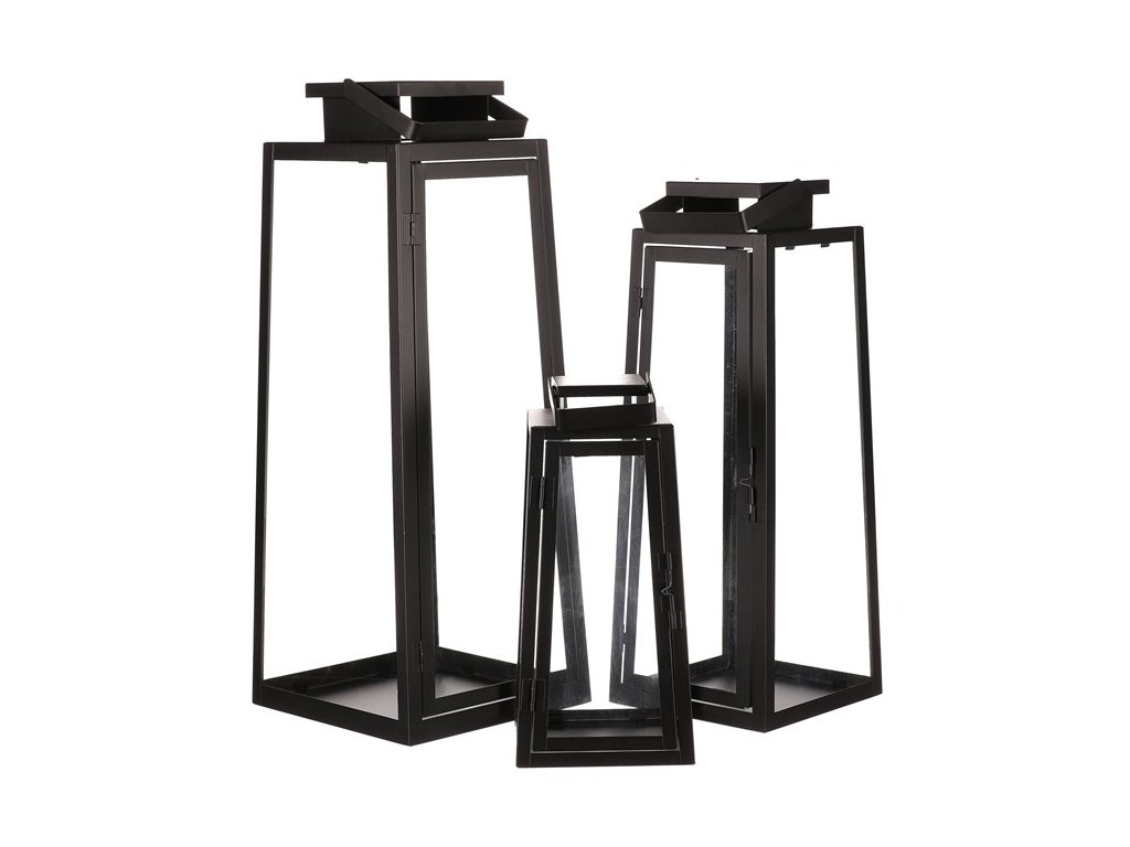 Lucerna kovová - čtyřboká, černá, cena za sadu 3 ks