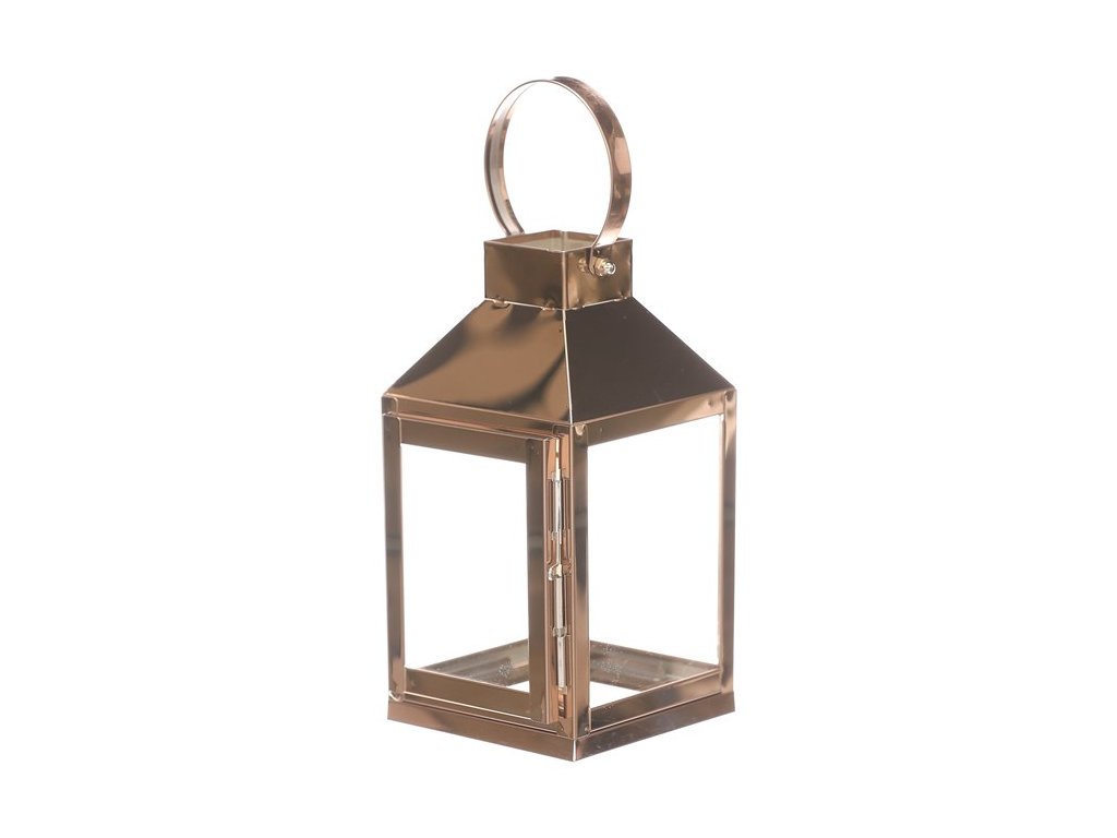 Malá čtyřboká lucerna si kovovými rámy v měděné barvě, bude skvělým ozdobným, ale především světelným prvkem vašeho prostoru. Lze ji postavit na stůl, okenní parapet, případně jiné vyvýšené místo. Díky kovovému oku v horní části, nad stříškou, ji lze i pověsit a získat tím nádherný zdroj přirozeného světla z vložené svíčky. Všechny 4 boky jsou vyplněné čirým sklem, skrze které budou neodolatelně pronikat paprsky světla všemi směry.Doplňkové parametry
