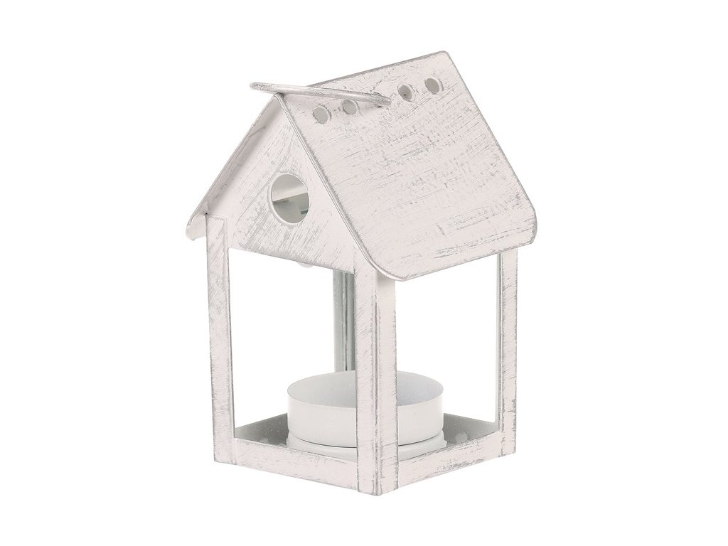 Tato malá kovová lucerna v bílé barvě se díky svým malým rozměrům hodí i do míst s omezeným prostorem. Vypadá jako malá ptačí budka a uvnitř je místo tak akorát na čajovou svíčku. Ke stříšce je připevněno kovové kolečko, za které je možné lucerničku pověsit. Lze ji taktéž jednoduše postavit třeba na okenní parapet, stůl, římsu a další viditelné místa.Doplňkové parametry