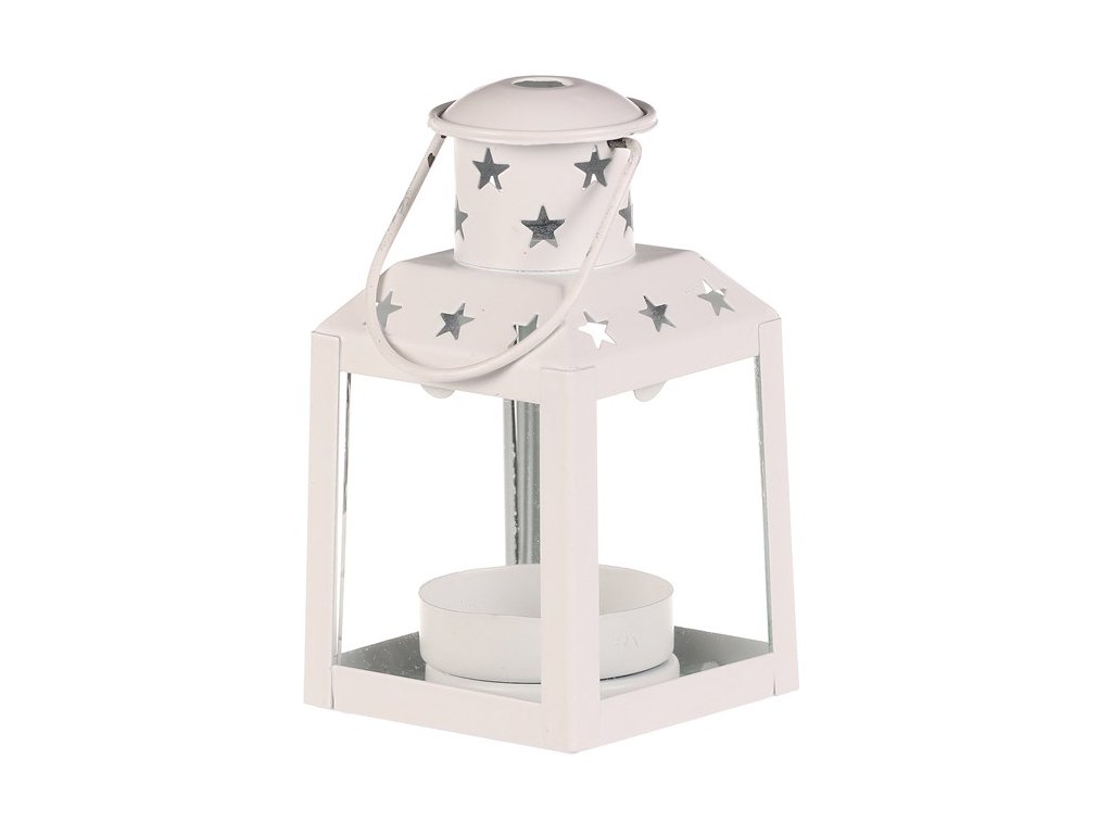 Lucerna mini - kovová, stříška s hvězdami, bílá