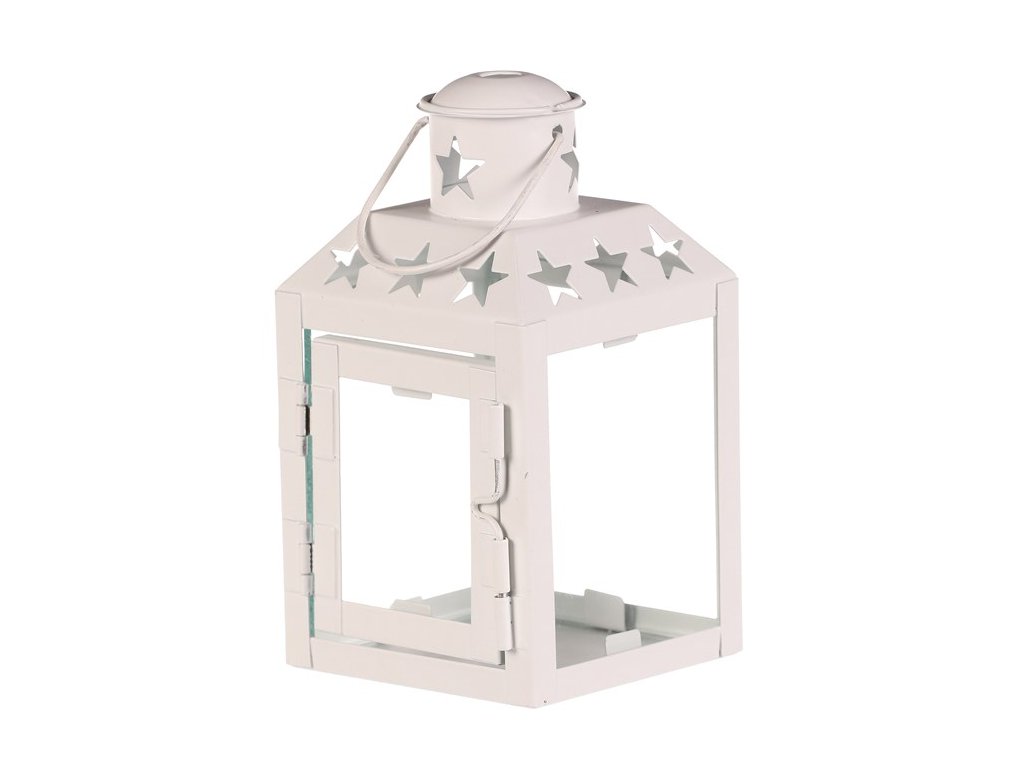 Lucerna mini - kovová, stříška s hvězdami, bílá