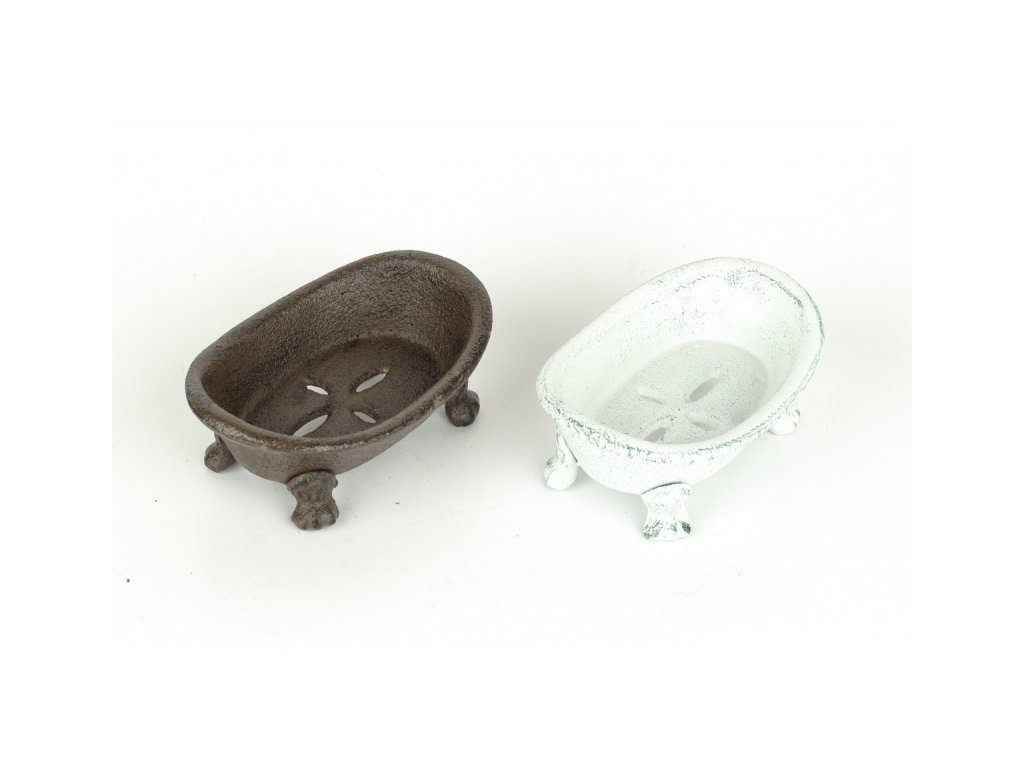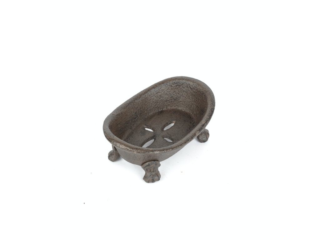 Mýdlenka ve tvaru vaničky je ideální na tuhé mýdlo nejen do koupelny, ale třeba i do kuchyně či zahrady. Díky otvorům z mýdla bude nadbytečná voda odtékat a nebude se držet ve vaničce. Litinová mýdlenka se hodí do každého interiéru, ať už máte rádi retro nebo modernu.