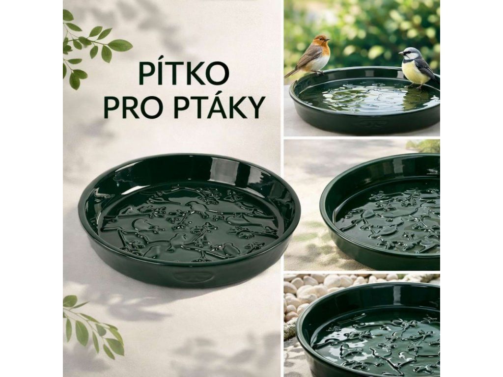 Pítko pro ptáky nabízí ptákům dvojnásobnou zábavu. Poskytuje jim místo na pití i místo ke koupeli. Povrch je opatřen reliéfem.