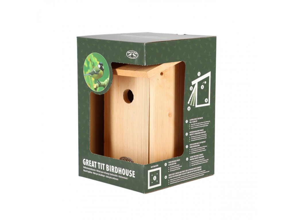 Ptačí budka pro sýkorku, je vyrobená z kvalitního důkladně vybraného olšového dřeva.