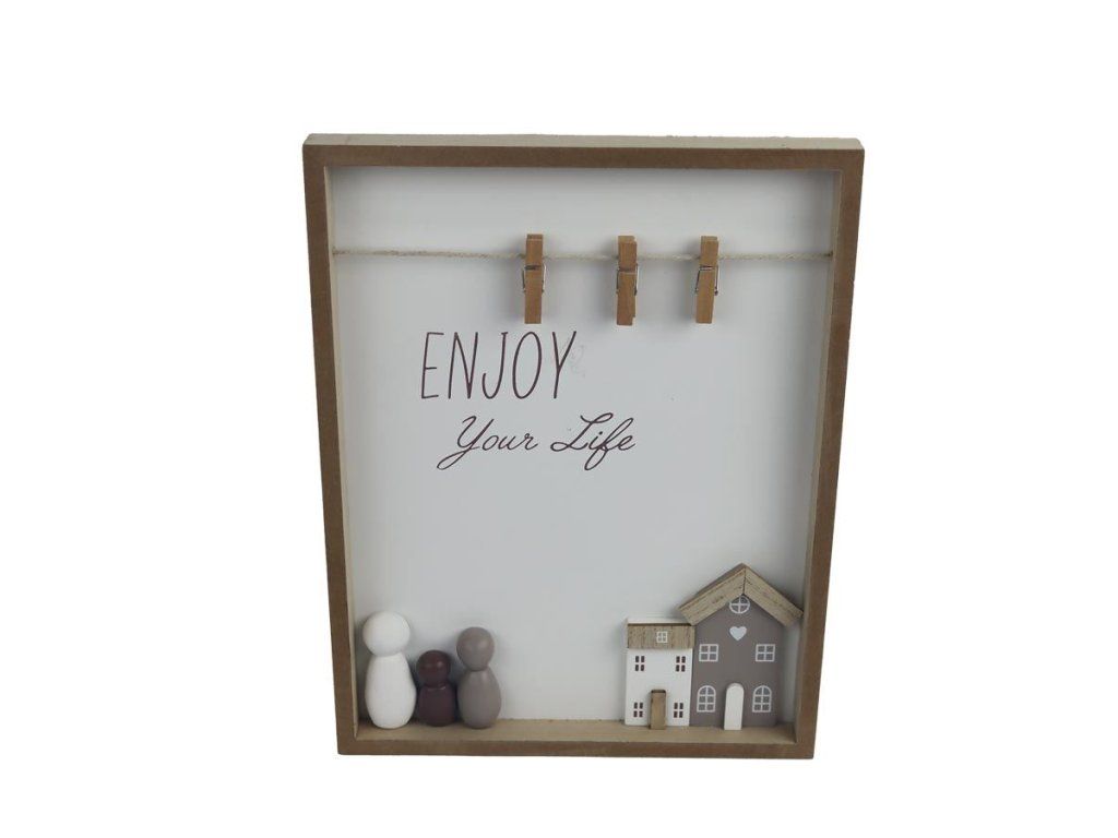 Dekorační rámeček na fotky s kolíčky. Rozměry: 22 x 23 x 28 cm. Materiál: dřevo. Barva: hnědá, bílá. Tento výrobek není hračka.Doplňkové parametry