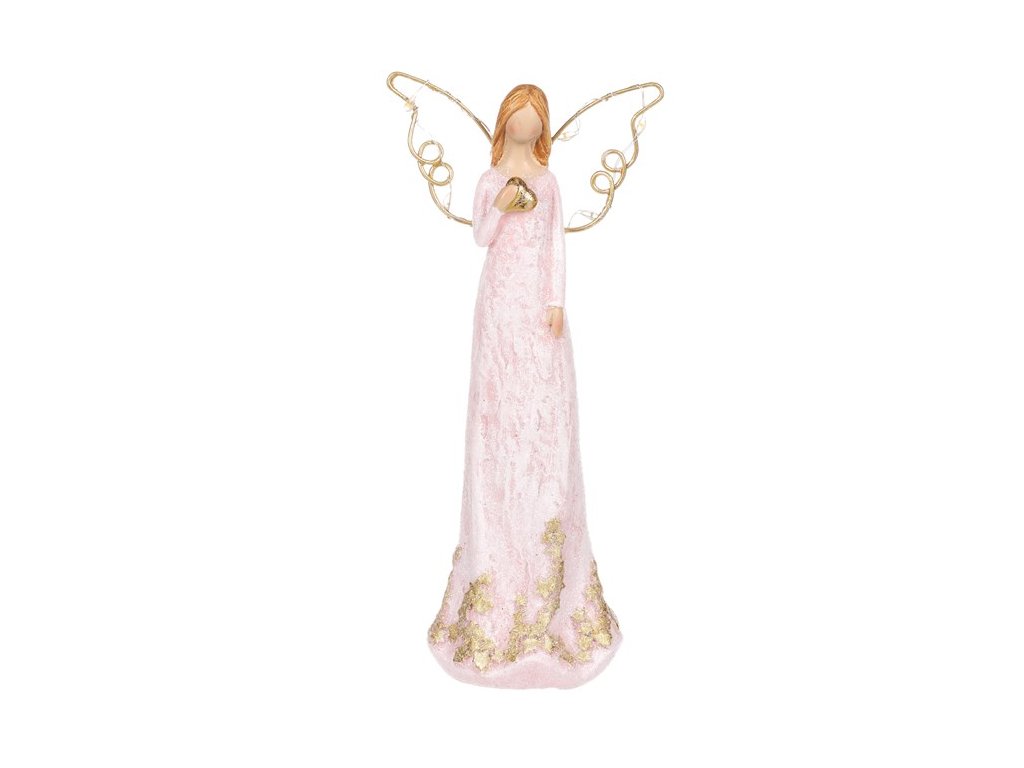 Anděl se svítícími křídly - polyresin, růžový se zlatým srdcem