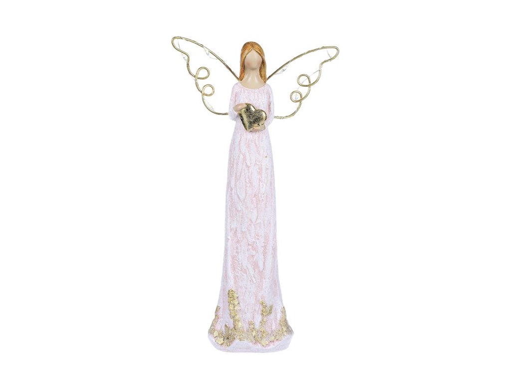 Anděl se svítícími křídly - polyresin, růžový se zlatým srdcem