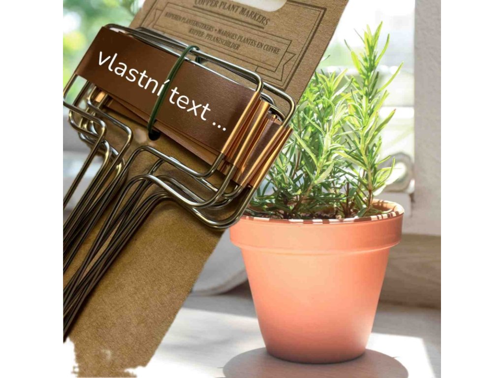 Cedulka měděná zapichovací 6,4 x 15,5 x 0,2 cm set 6 kusů
