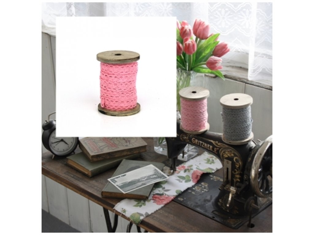 Dekorace stuha krajková růžová pr. 7,5x10cm