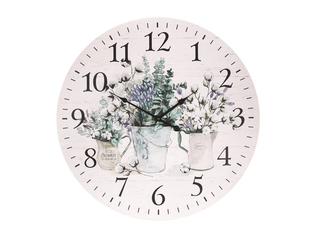 Hodiny nástěnné - pr. 58 cm, MDF, mix květin a rostlin