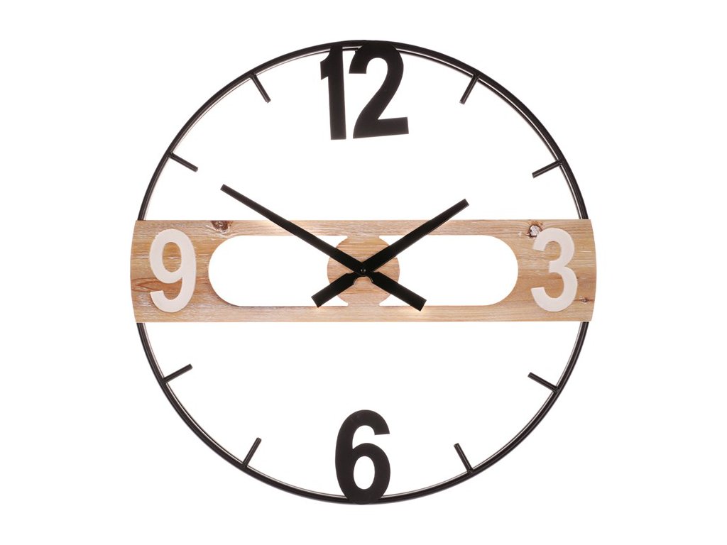Hodiny nástěnné - pr. 60 cm, mix kovu a MDF