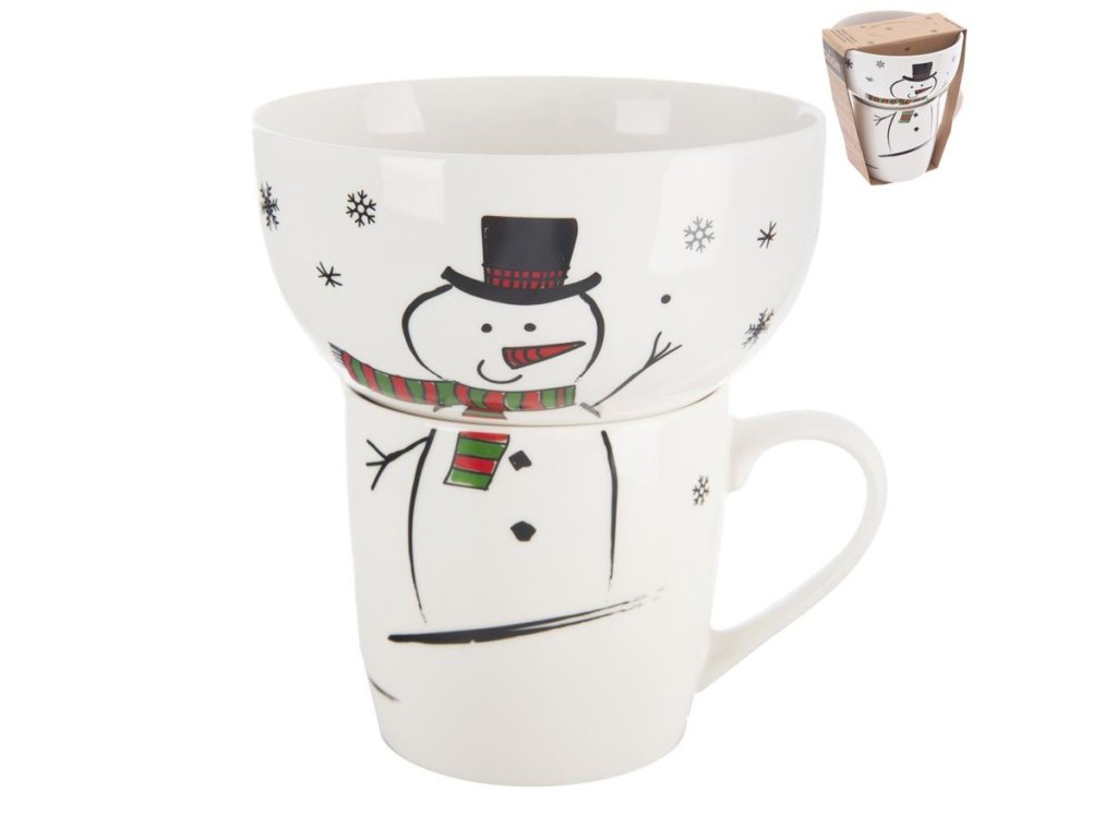 Hrnek + miska porcelánový set sněhulák 0,35 l O0500
