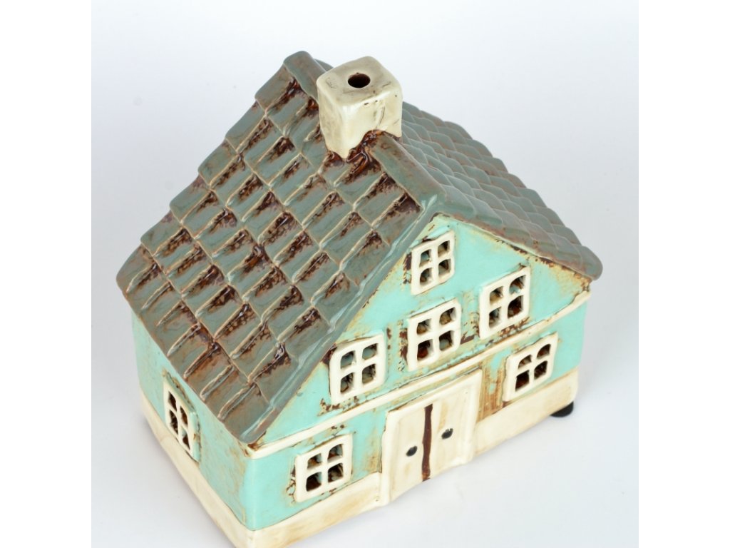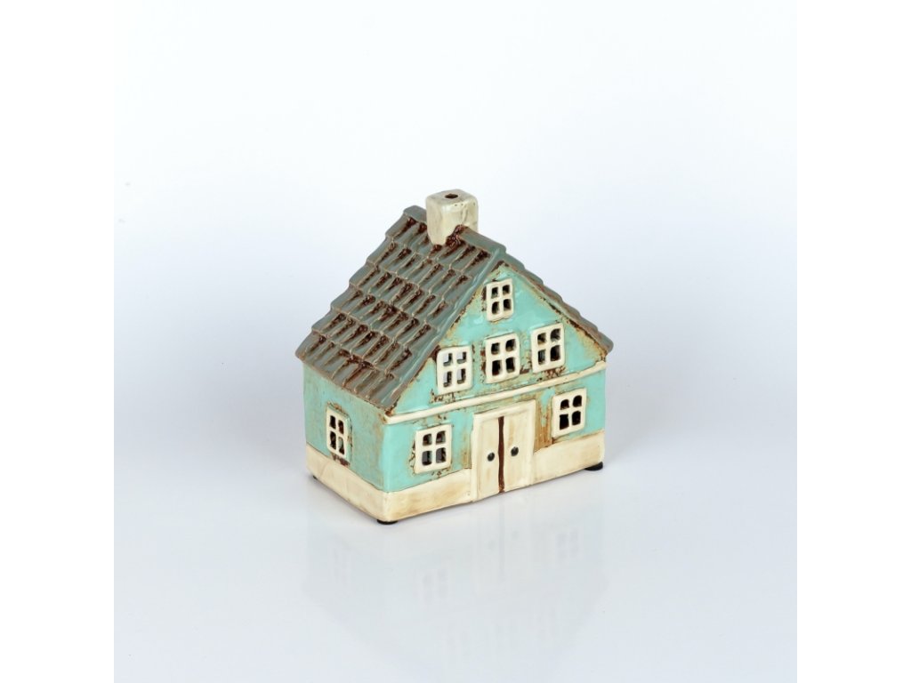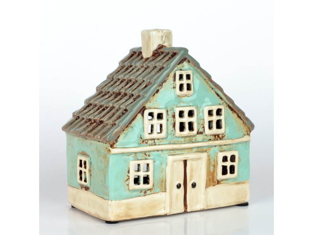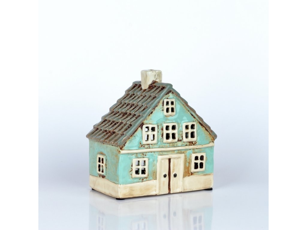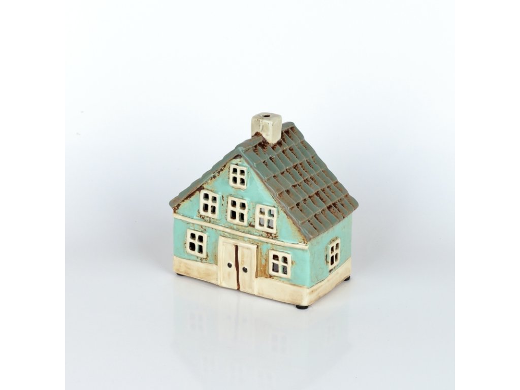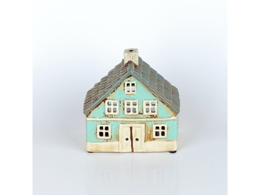 Keramický vánoční domeček 8 oken azurově modrý