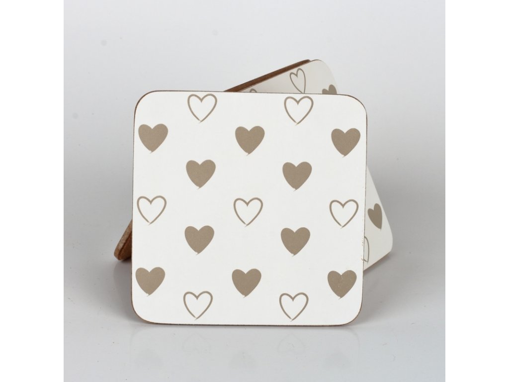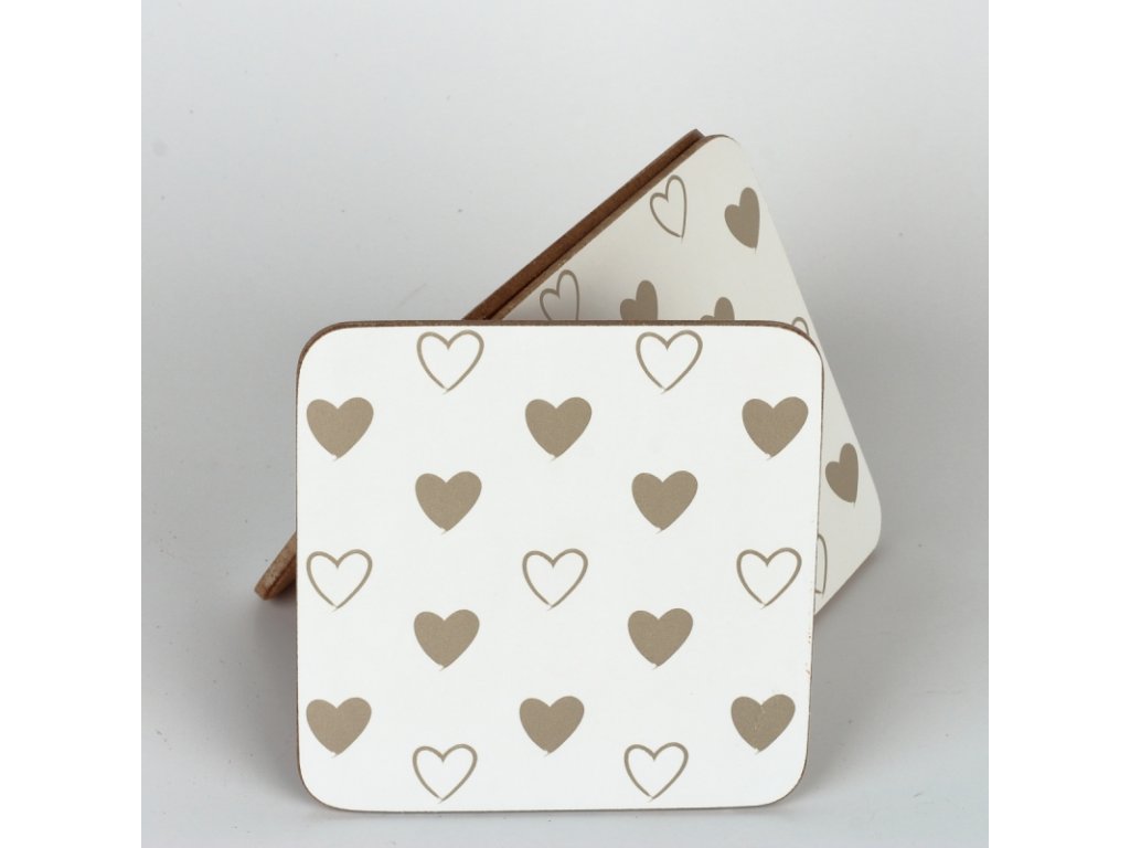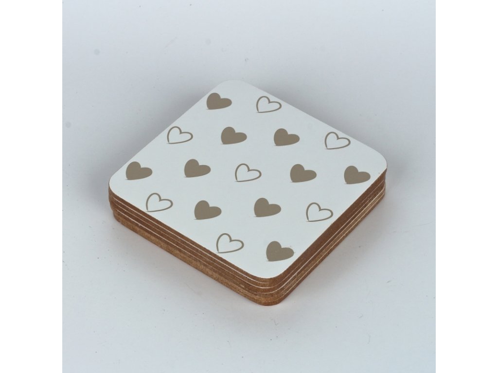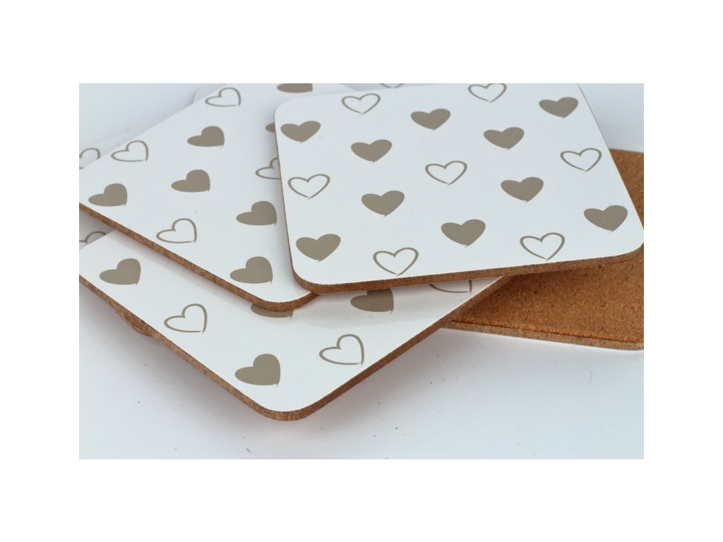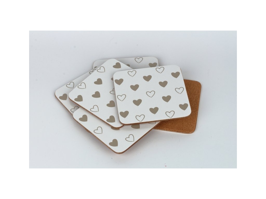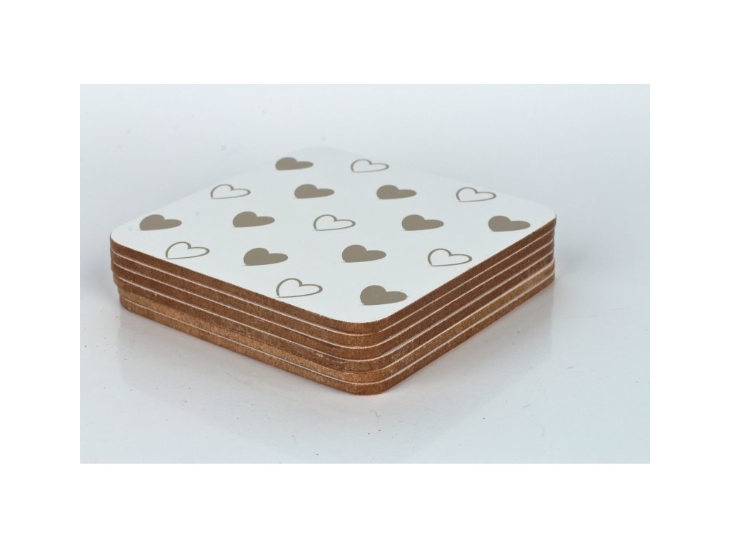 Korkové prostírání pod hrnky drobná srdce (sada 6ks) 10x10cm