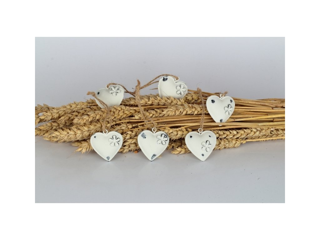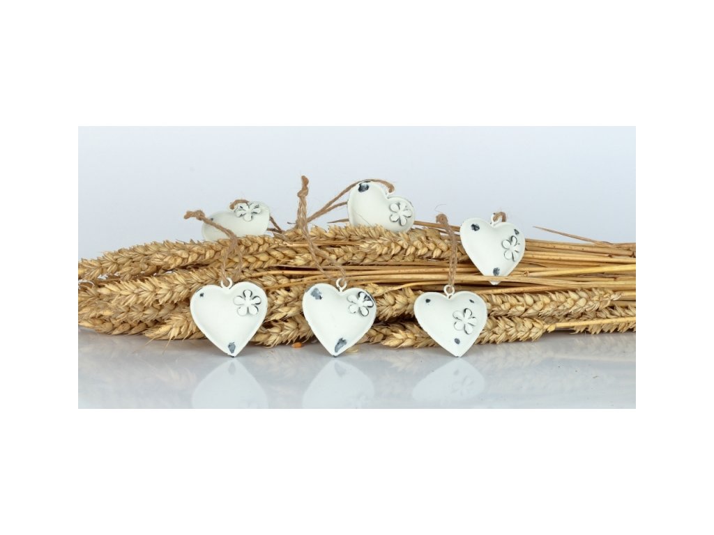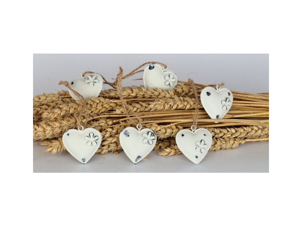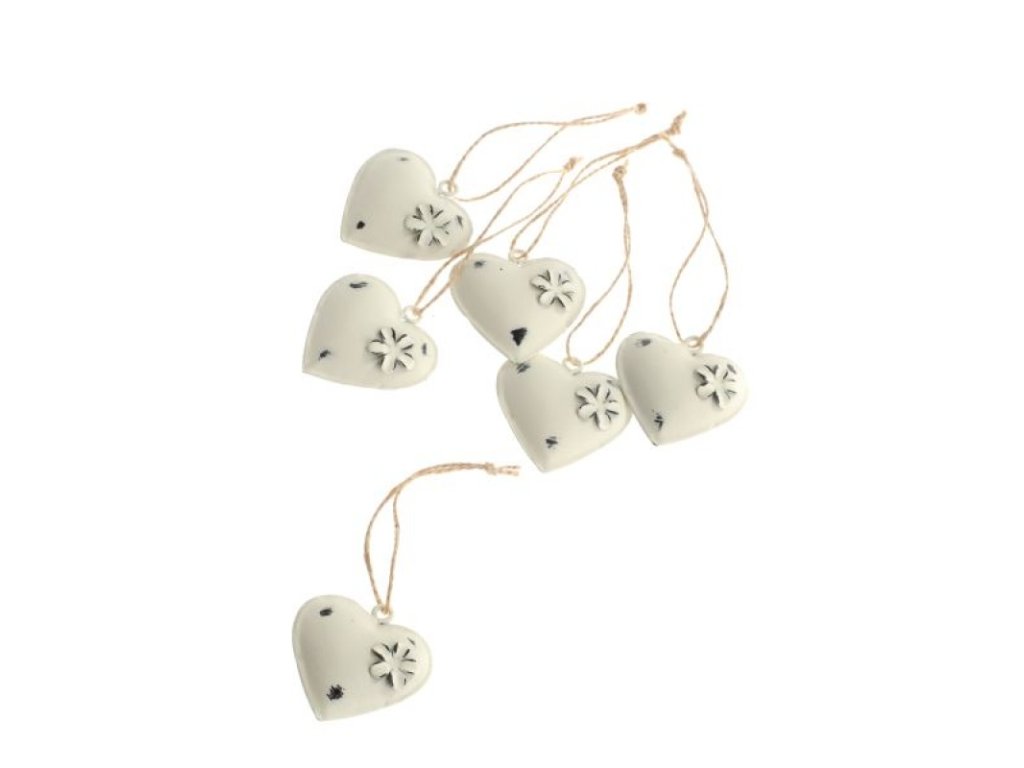 Kovová závěsná dekorace srdce 6ks 4,5×4,5×1,3cm