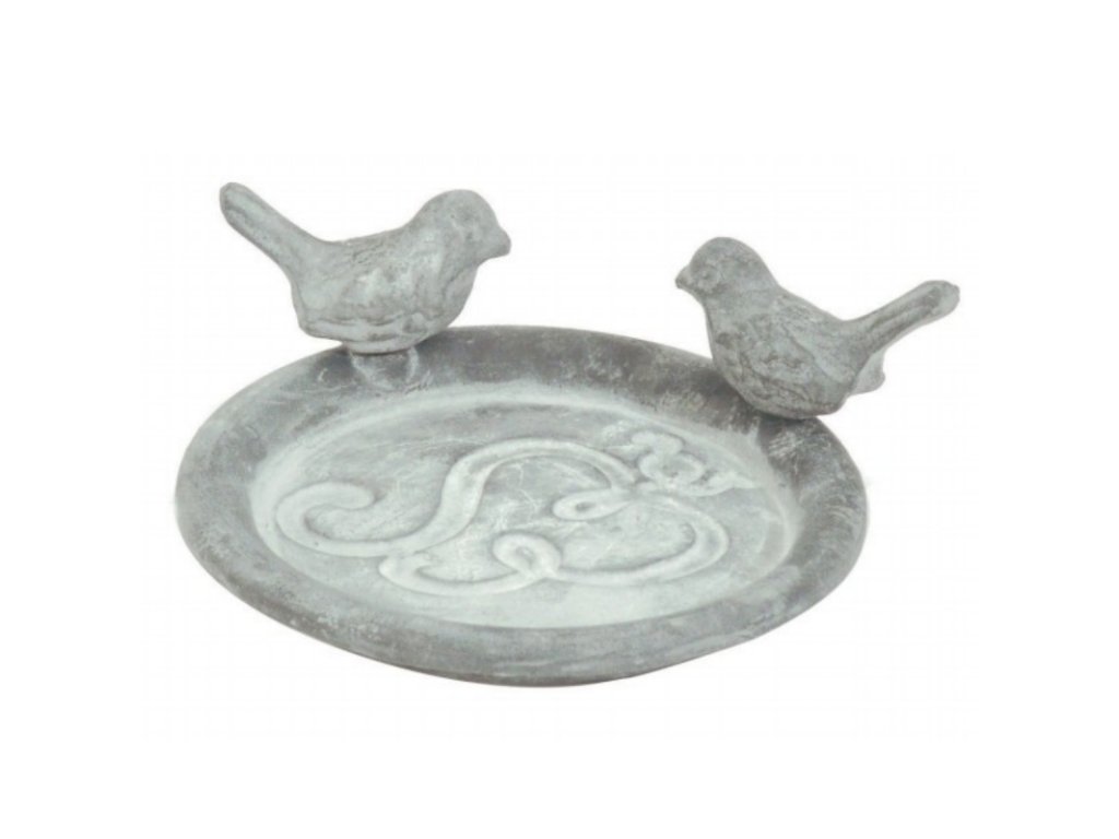 Krmítko miska s ptáčky šedá 12cm