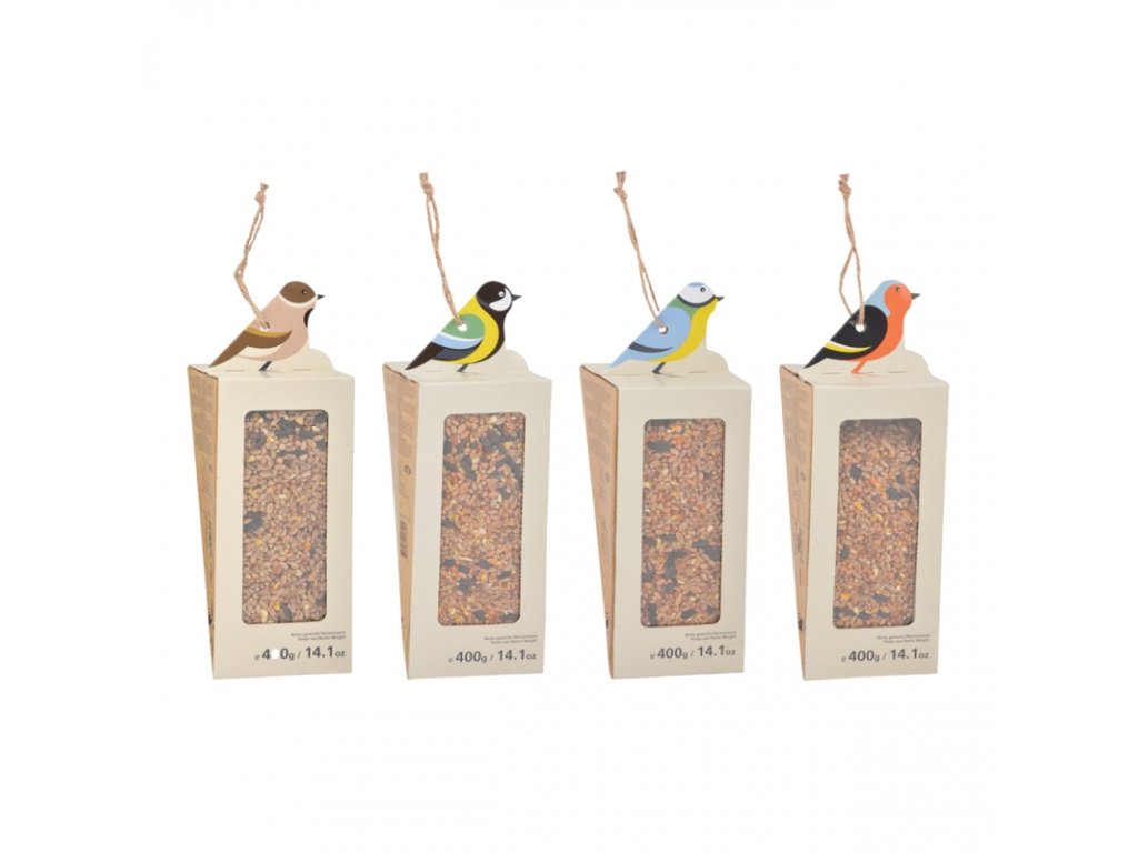 Krmítko pro ptáky lepenkové se směsí semen 8,2 x 8,1 x 23,7 vrabec polní