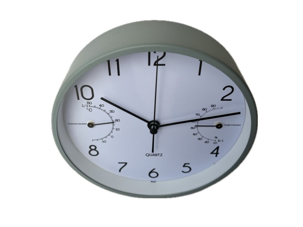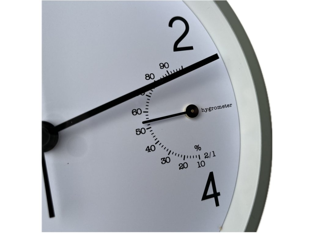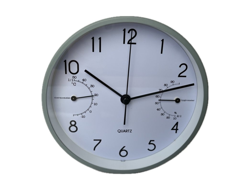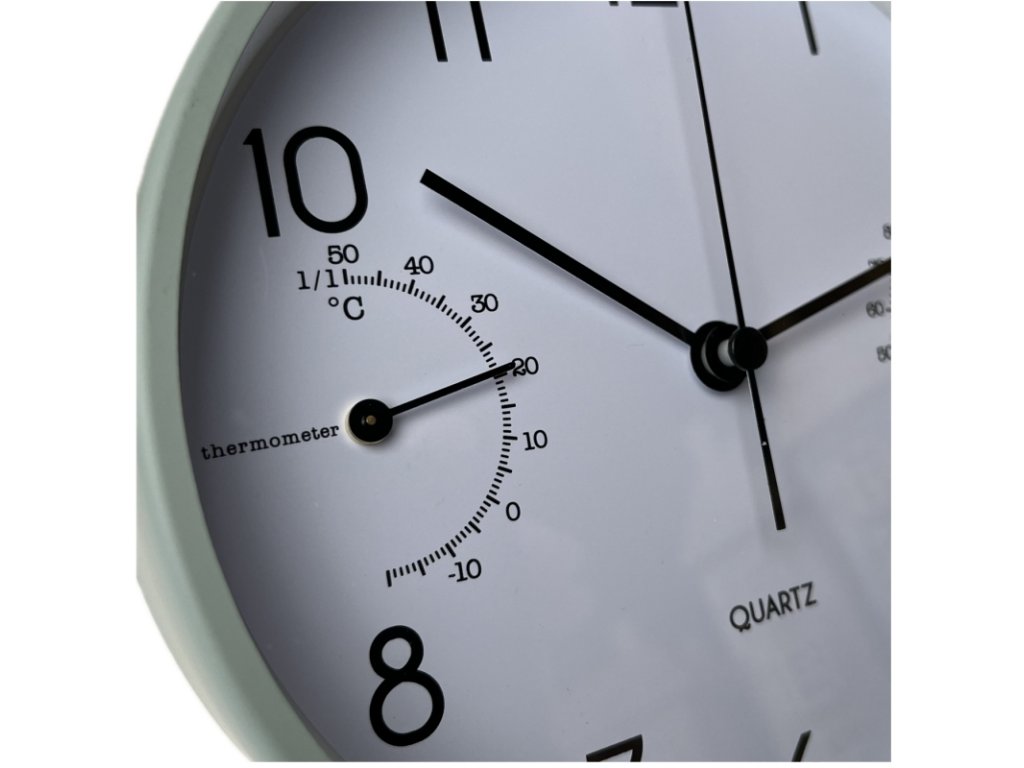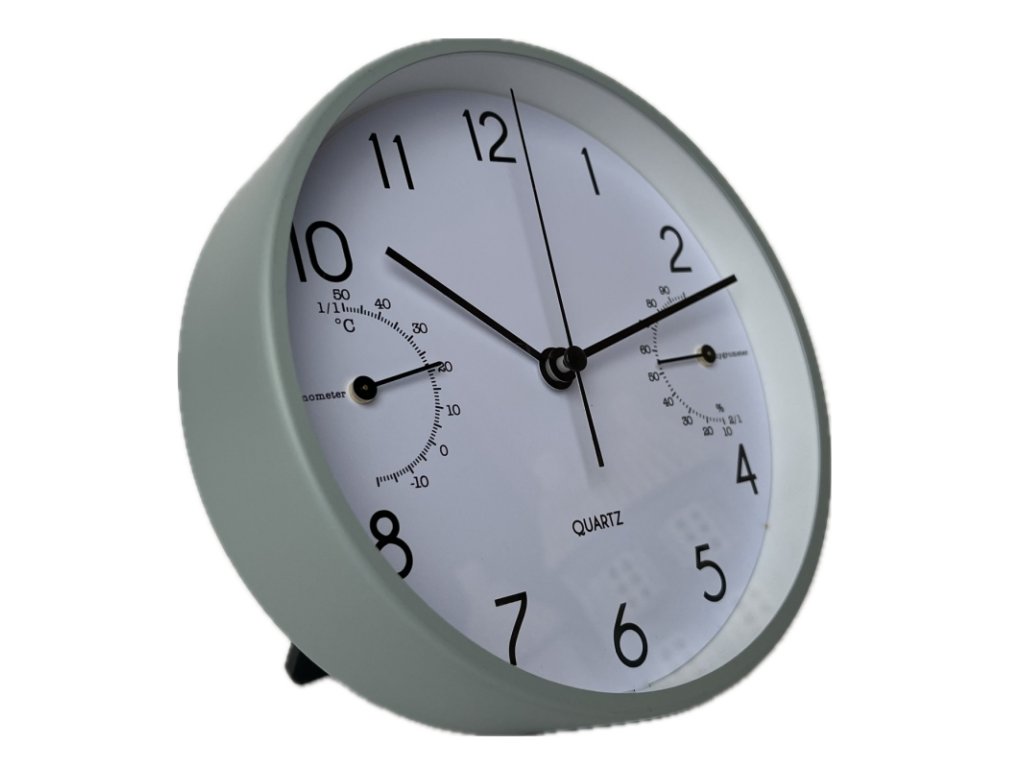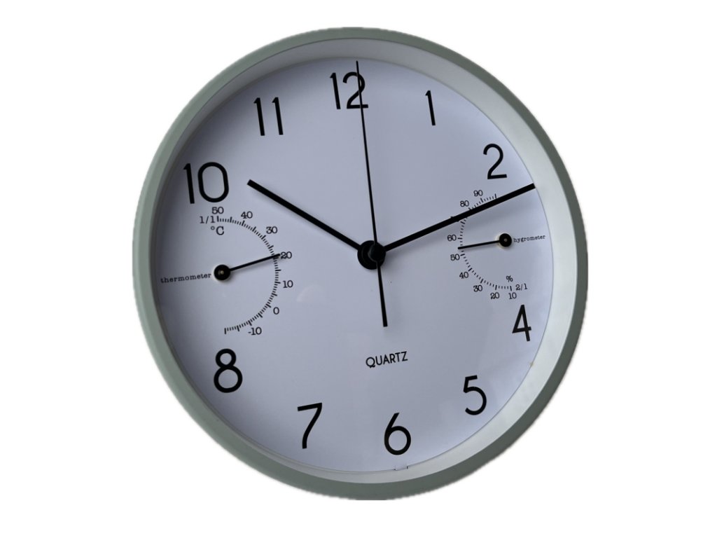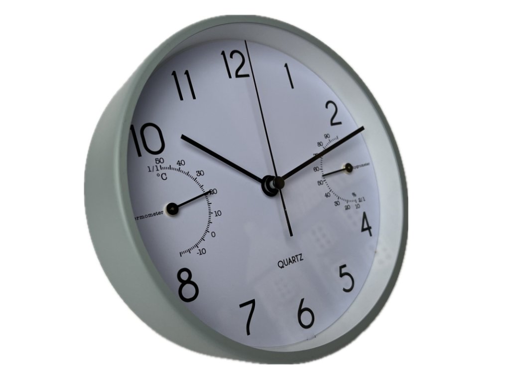 Levné nástěnné hodiny s teploměrem a vlhkoměrem - 15cm hliník