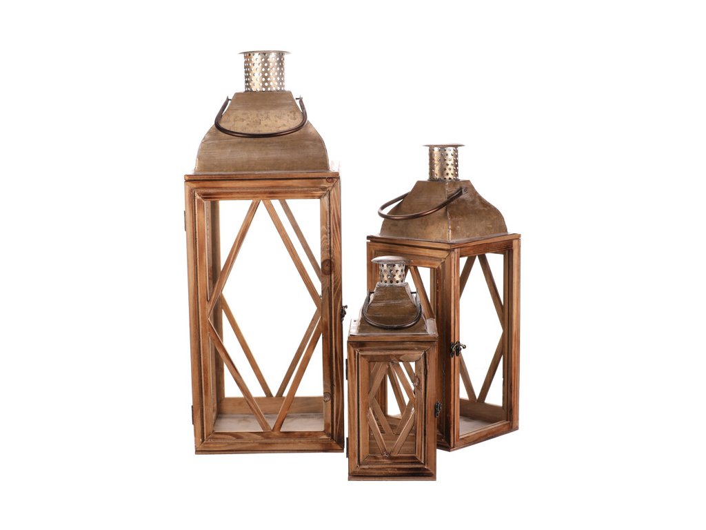 Lucerna dřevěná - čtyřboká, cena za sadu 3 ks