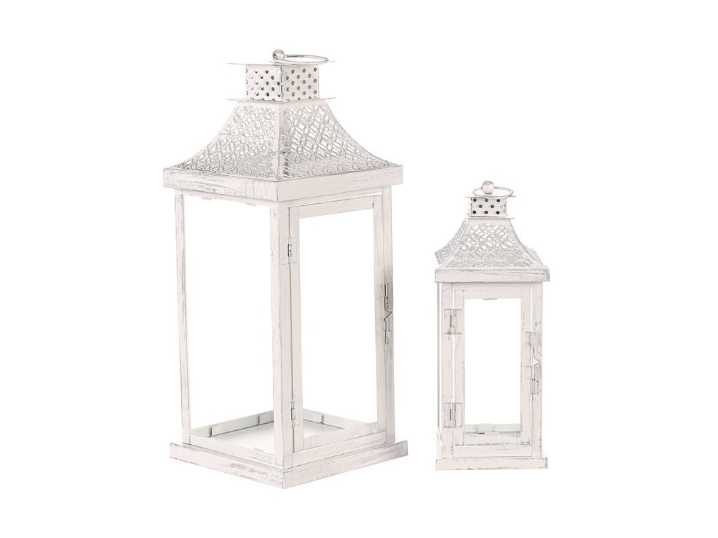 Lucerna kovová - čtyřboká, bílá, cena za sadu 2 ks