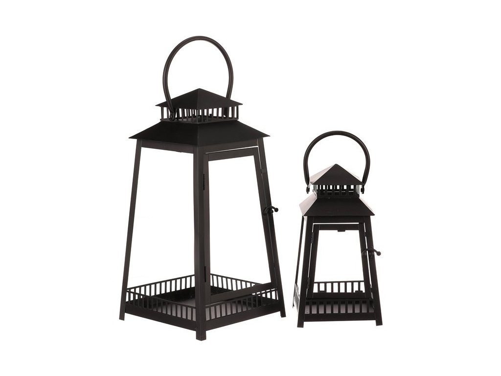 Lucerna kovová - čtyřboká, černá, cena za sadu 2 ks