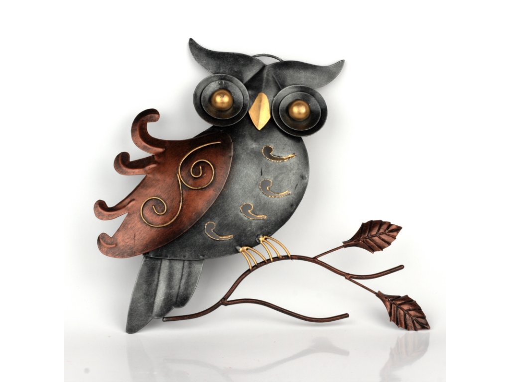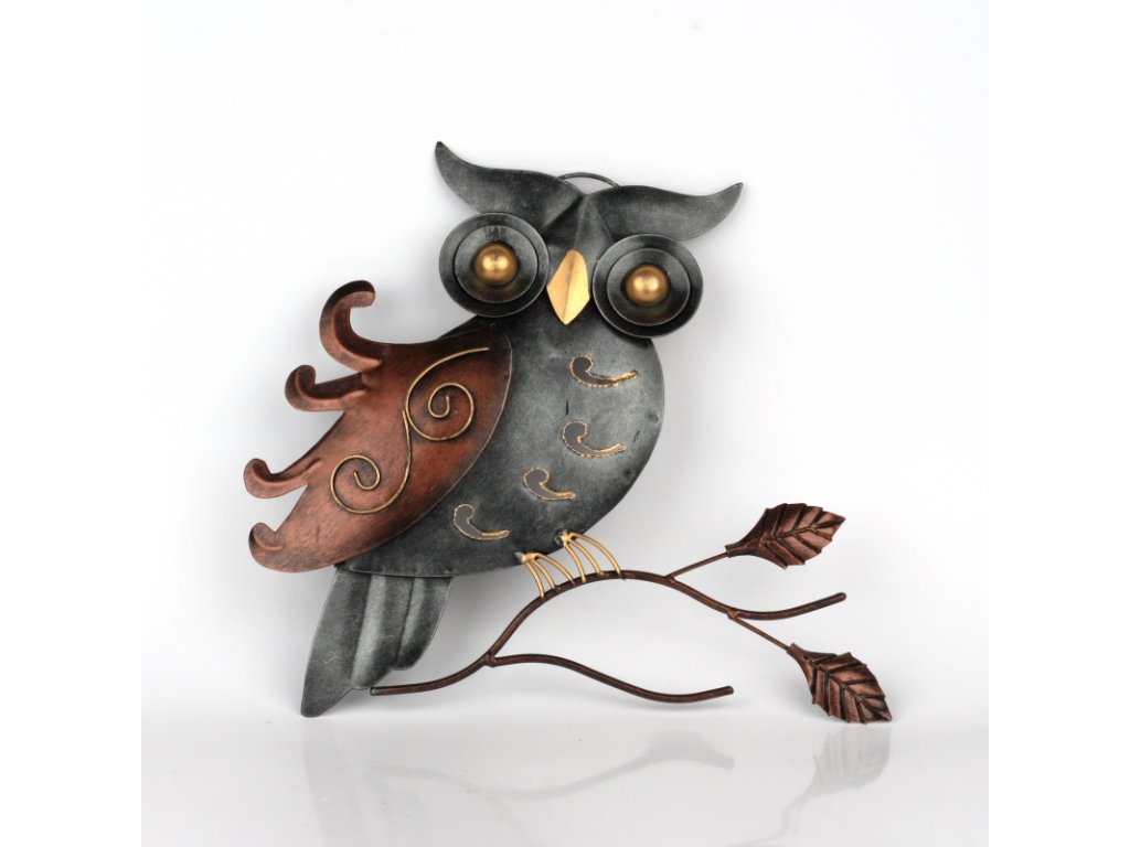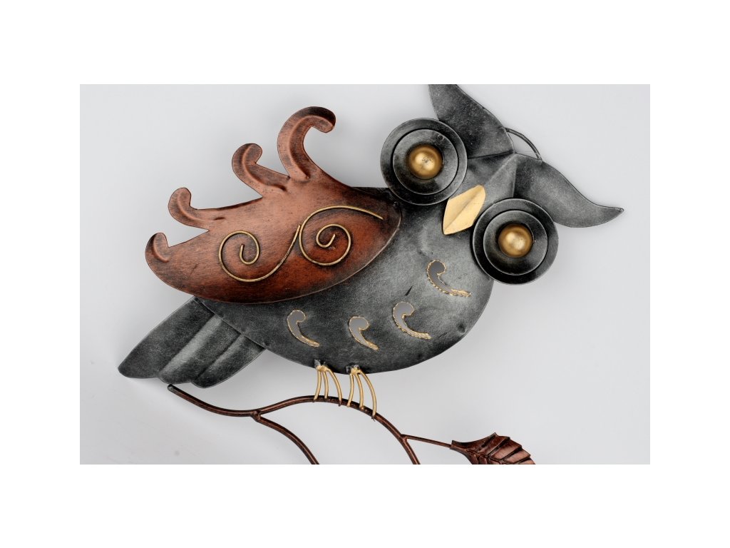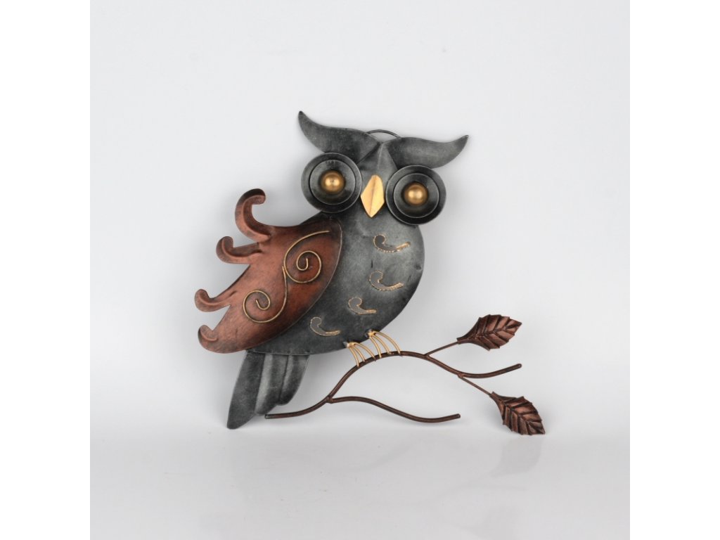 Nástěnná dekorace kovová sova 30cm