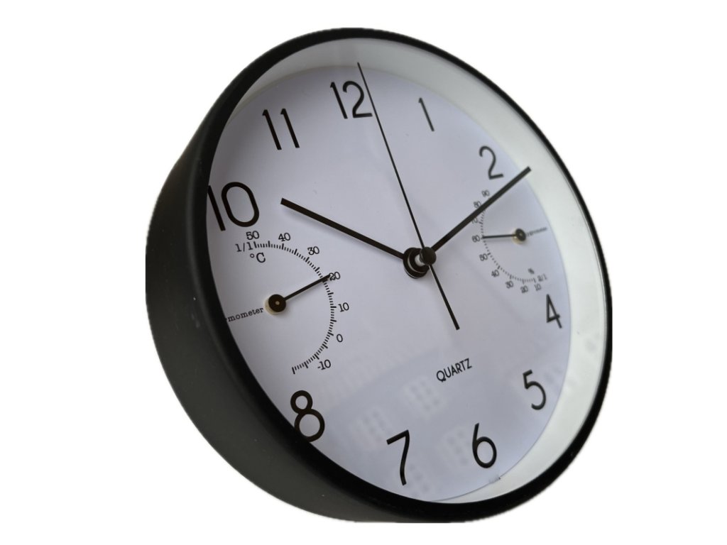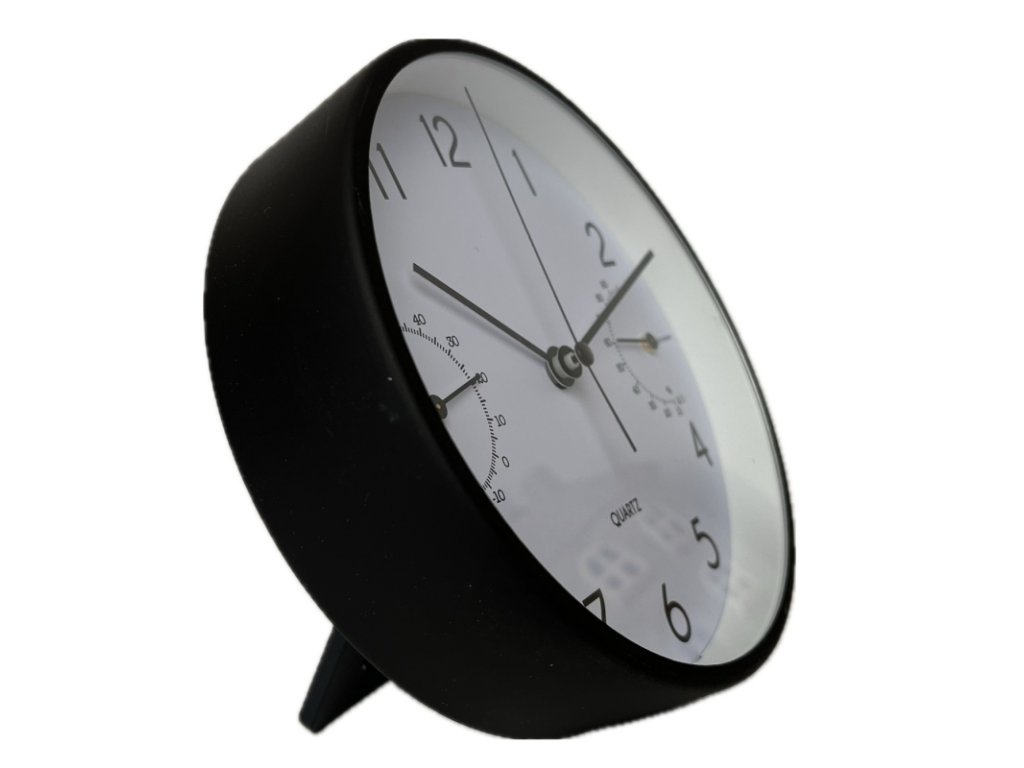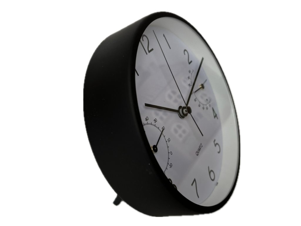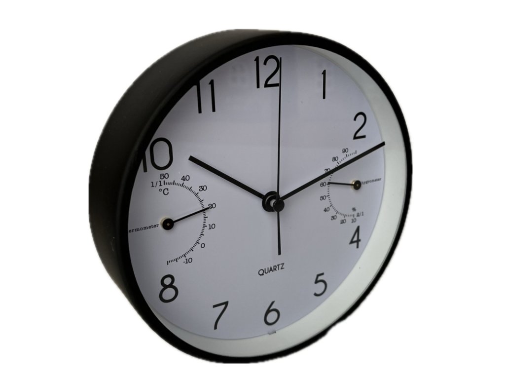 Nástěnné hodiny s teploměrem a vlhkoměrem hliník 15 x 15 x 4,2 cm