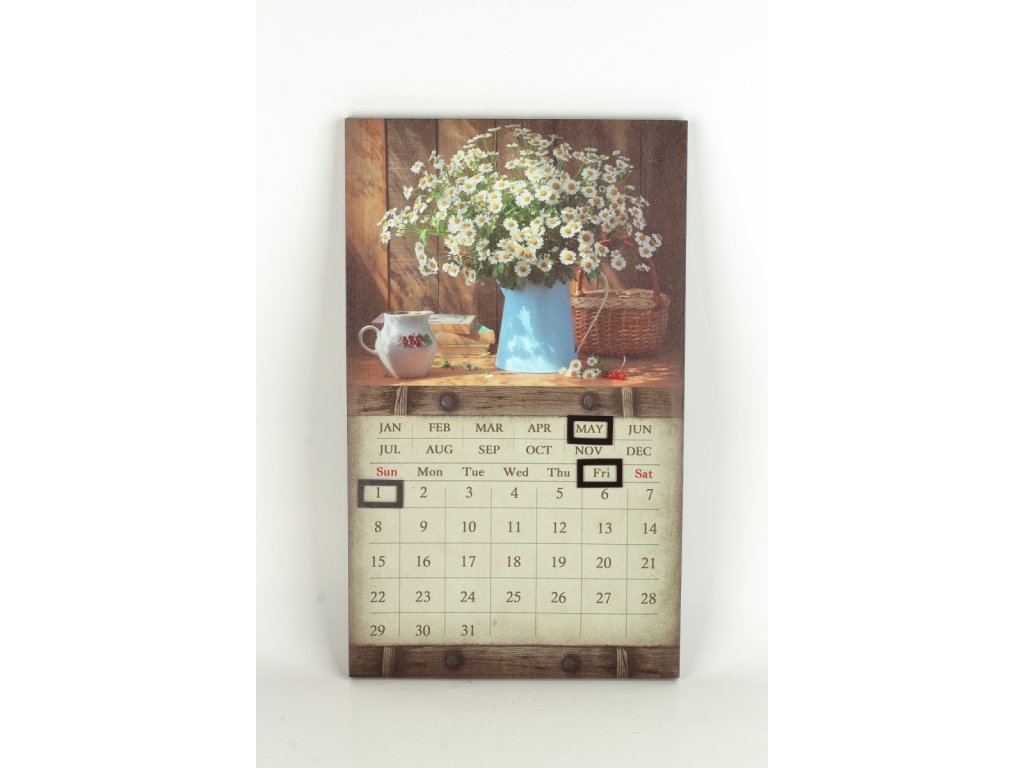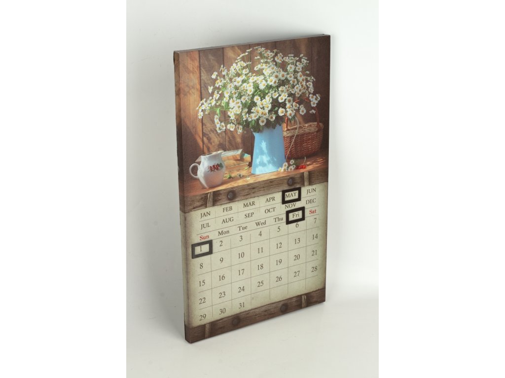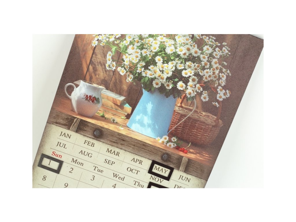 Nástěnný kalendář s magnety 30 x 50 x 1,8 cm kopretiny v modré váze